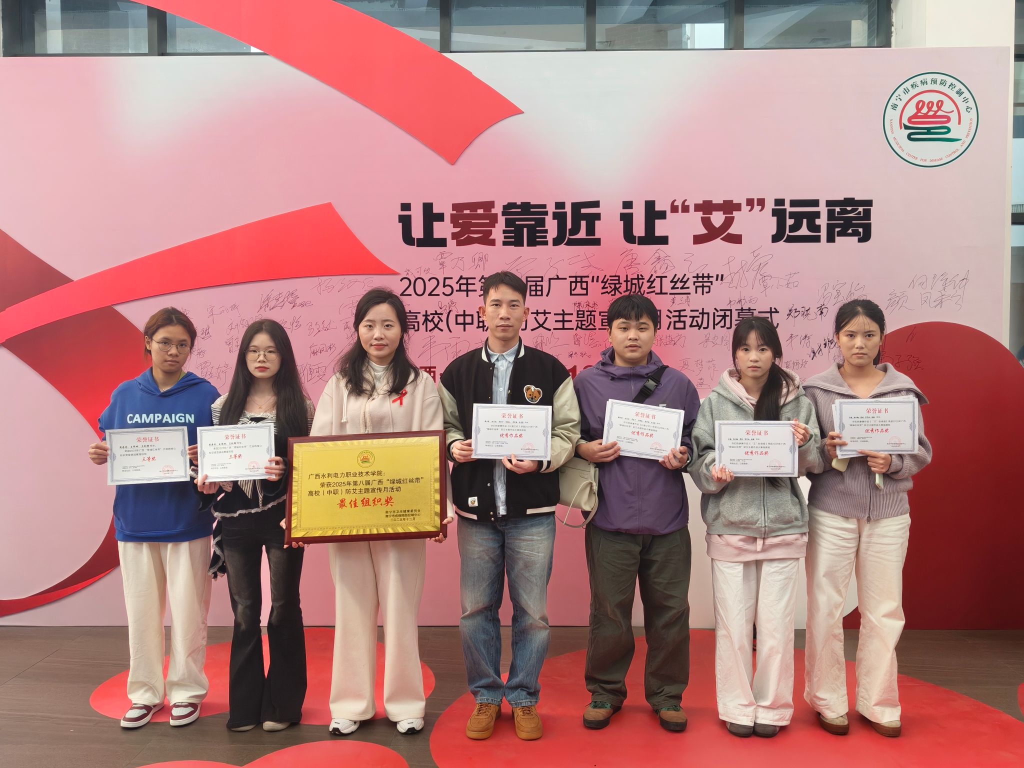 [本网讯]近日,从南宁市疾病预防控制中心下发的《关于公布2025年第八届广西“绿城红丝带”高校(中职)防艾主题宣传月活动系列比赛获奖名单的通知》中传来喜讯,学校凭借在防艾宣传教育工作中的扎实举措、广泛覆盖和显著成效,荣获本次活动“最佳组织奖”,参赛学生...