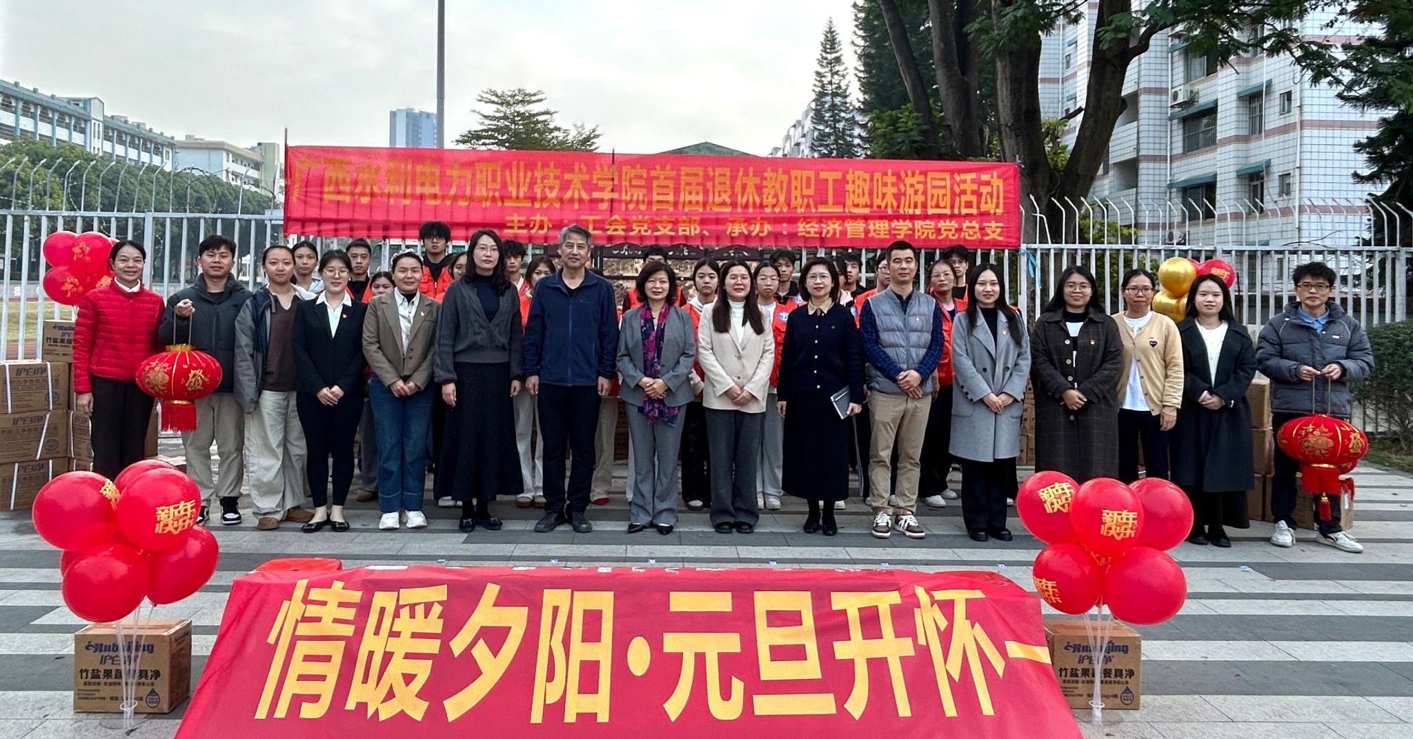 [本网讯]12月31日上午,首届退休教职工趣味游园活动在学校长堽校区水濂广场举办。本次活动由学校工会党支部主办,经济管理学院党总支协办。学校副校长、工会主席潘念萍出席活动并致辞。潘念萍代表学校向全校离退休教职工致以诚挚的问候,并对大家长期以来关心和支持...