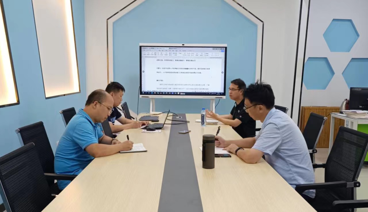 [本网讯]7月27日,机电工程学院召开“双高计划”项目申报工作进度汇报会,学校副校长刘存香,机电工程学院院长陆尚平,副院长陈韶光、季锐,各项目组负责人及成员参会。会上,各项目组负责人汇报了近期“双高计划”项...