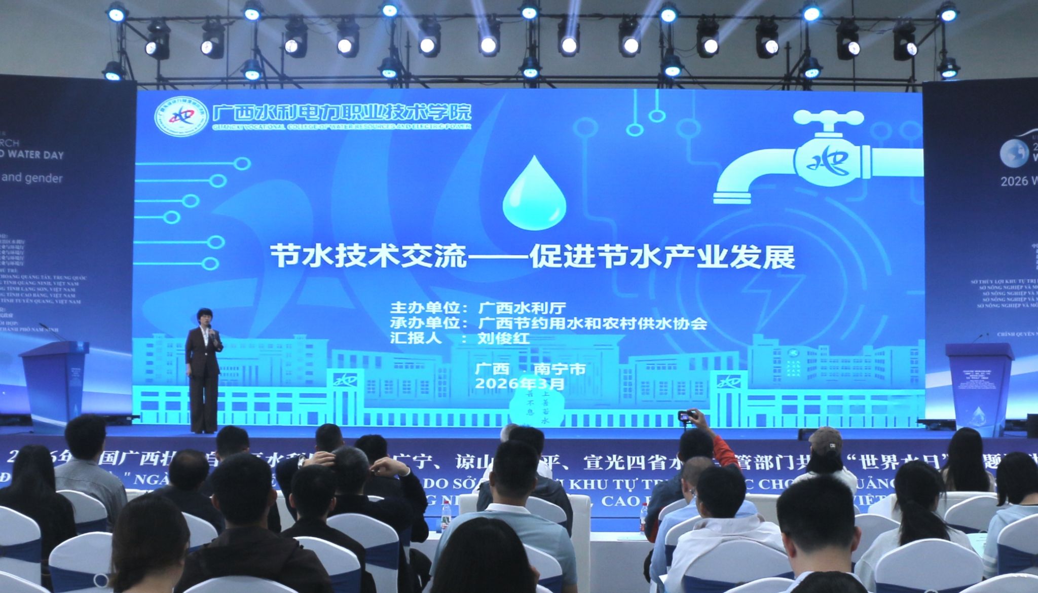 [本网讯]3月22日,全区节水技术交流活动在南宁国际会展中心举办。水利工程学院党总支率学生党支部、“慕水”辅导员工作室师生代表到场参会,以实景研学夯实专业基础,厚植节水理念,强化使命担当。