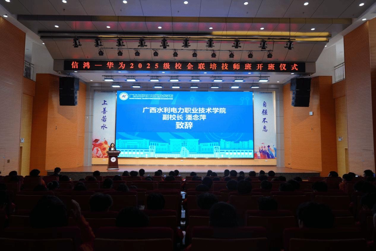 12月4日下午,学校2025级信鸿-华为技师班开班仪式在里建校区青年之家报告厅圆满举行。学校副校长潘念萍出席仪式并致辞,向成功入选的158名学员致以热烈祝贺,向长期支持学校发展的信鸿公司、华为公司表达诚挚谢意。