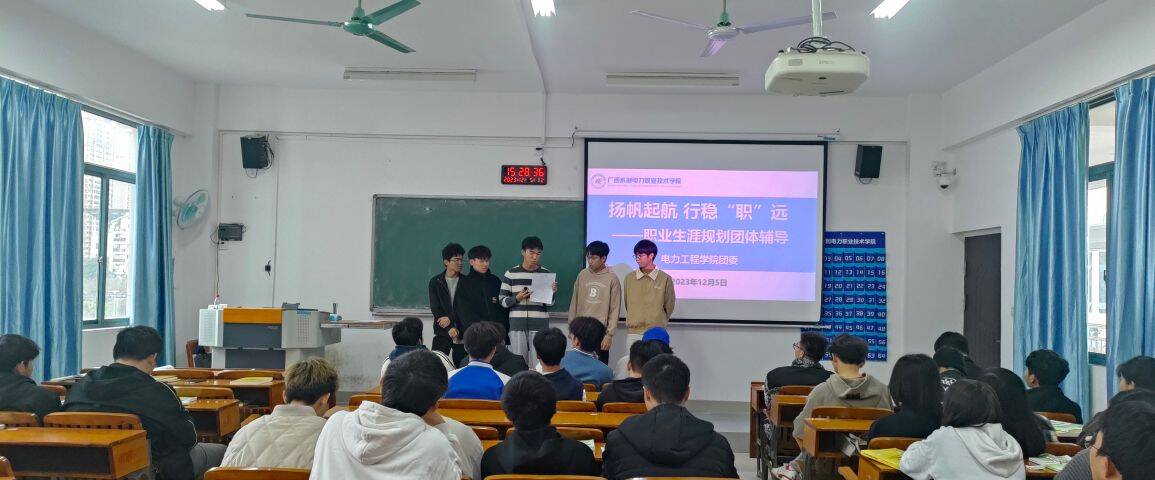 [本网讯]为帮助同学们认清当前就业形势,明晰个人职业发展方向,做好职业生涯规划。12月5日,电力工程学院团委在教学楼408教室开展职业生涯规划团体辅导活动,23供用电技术学生参加活动。