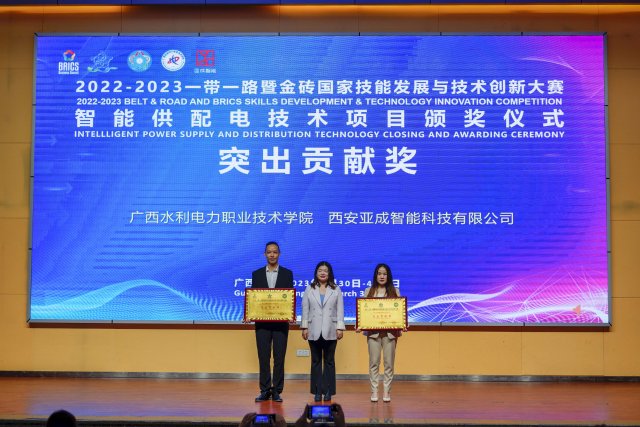 本次赛项共有国内44支队伍报名参赛,共颁发突出贡献奖2个、最佳组织奖5个、优秀组织奖9个,其中广西水利电力职业技术学院、西安亚成智能科技有限公司获得突出贡献奖;颁发“智能供配电技术”赛项一等奖4个、二等奖7个、三等奖11个、优秀奖14个,中职组一等奖1个、二等奖2个、三等奖2个、优秀奖3个,其中广西水利电力职业技术学院、广州铁路职业技术学院、西安航空职业技术学院、南京工业职业技术大学4支参赛队荣获高校组一等奖,百色市机电工程学校荣获中职组一等奖。学校徐庆锋、邱敏获得该赛项优秀指导教师奖。
