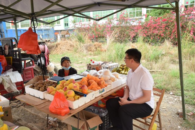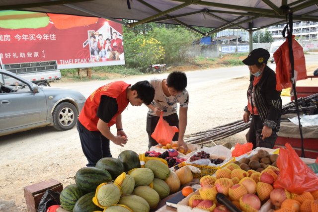 志愿者到达指定地点迅速开展工作,搭建帐篷、摆放摊位,帮助农户促销健康水果产品。期间,果农与志愿者分享自己种植水果的经历,谈到疫情和地理位置的影响,许多水果滞销,但他们始终坚守最平凡的岗位。在志愿者们的一次次实践中,志愿者们开始掌握了售卖的技巧,助力果农销售农产品。在果农和志愿者们的共同努力下,短短的几个小时农产品就销售了一半,志愿者们也从中感受到了劳动的光荣。