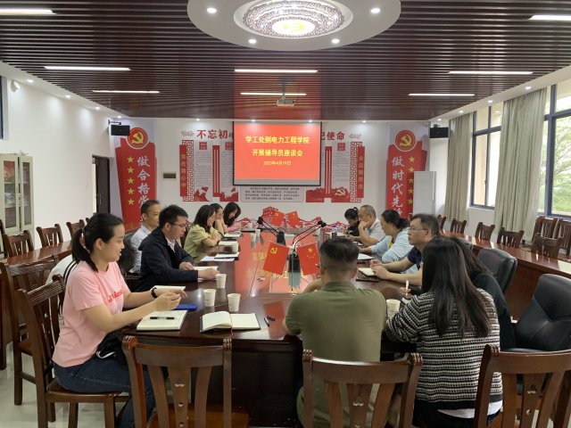 [本网讯]4月19日上午,党委学生工作部部长李晓红、副部长刘中宽带队到我院开展辅导员座谈会。电力工程学院党总支书记罗宇强、全体辅导员参加会议。