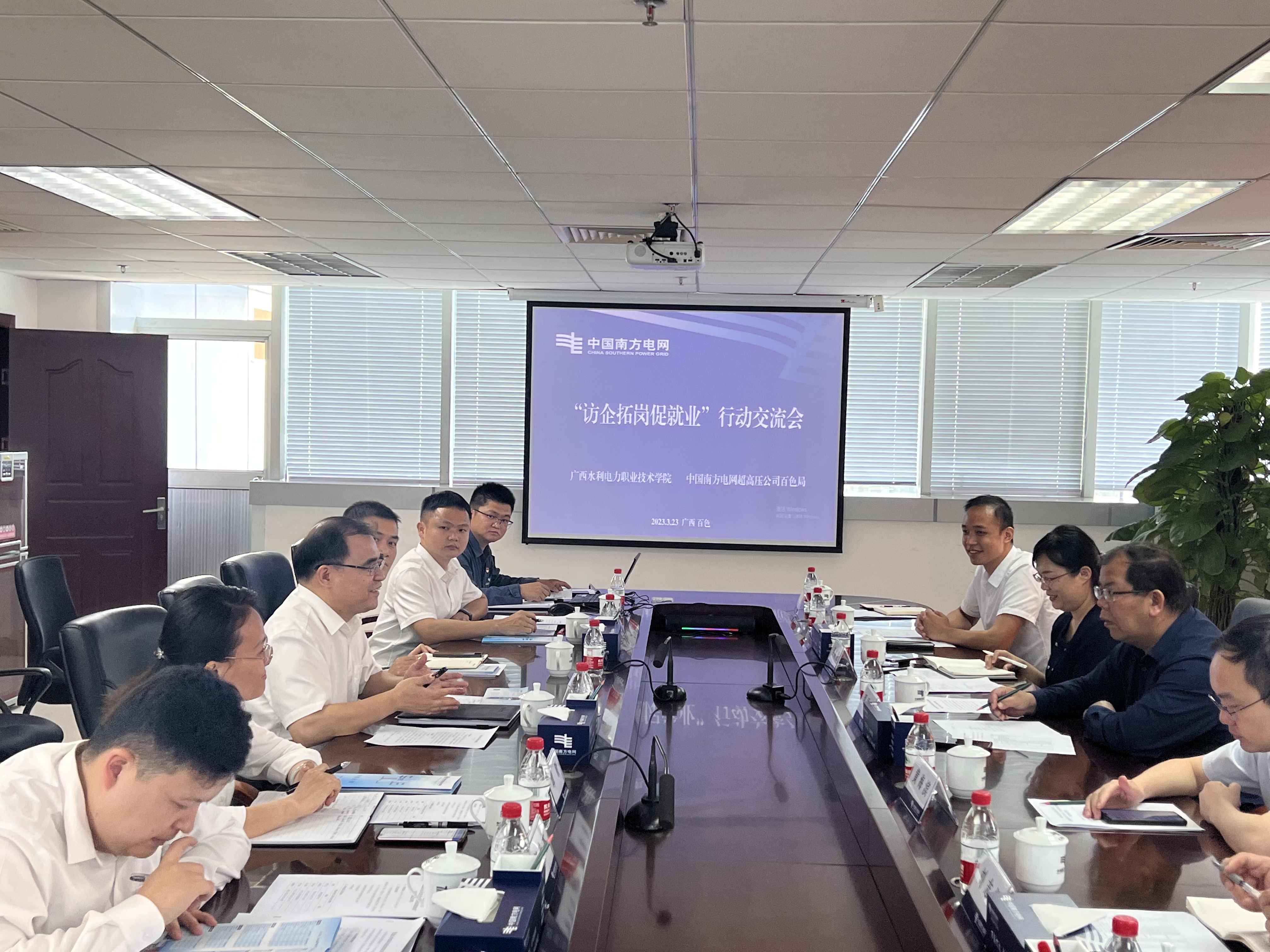 [本网讯]3月24日下午,学校党委书记罗显克一行前往中国南方电网有限责任公司超高压输电公司百色局开展“访企拓岗”促就业专项行动,得到了超高压输电公司百色局党委书记陈鸿飞、广西劳模谭敏校友、南方电网领军技术专家马俭校友等一行的热情接待,学校相关部门负责人随同参与了本次交流。