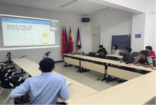 本次培训面向华电柬埔寨公司公司柬籍员工,由水利工程学院石刘宏幸老师担任《水电站知识培训》主讲。课程紧密贴合项目实际岗位需求,系统讲解水电站核心系统运行原理、设备日常维护要点与应急处置流程,通过案例解析与动画演示相结合的方式,帮助学员高效掌握岗位必备专业知识,为后续技能提升筑牢坚实基础。