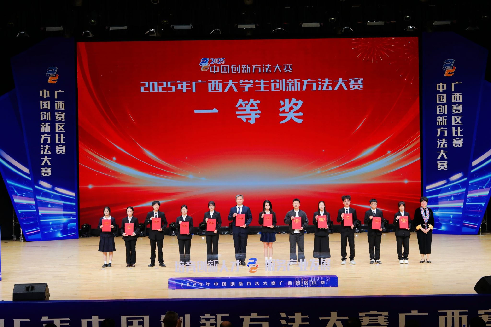 [本网讯]12月18日,由自治区科学技术协会主办、我校承办的2025年广西大学生创新方法大赛在学校里建校区圆满落幕。自治区科协党组书记、副主席梁春花,自治区水利厅总工程师韦恩斌,学校党委书记李林,自治区科技厅二级巡视员黄志标,自治区人力资源社会保障厅二级巡视员黄少坚,自治区国资委二级巡视员何载福,学校副校长周涛,广西电力行业协会理事长姚强等领导出席大赛闭幕式。闭幕式由自治区科协党组成员、副主席王鸿鹄主持。