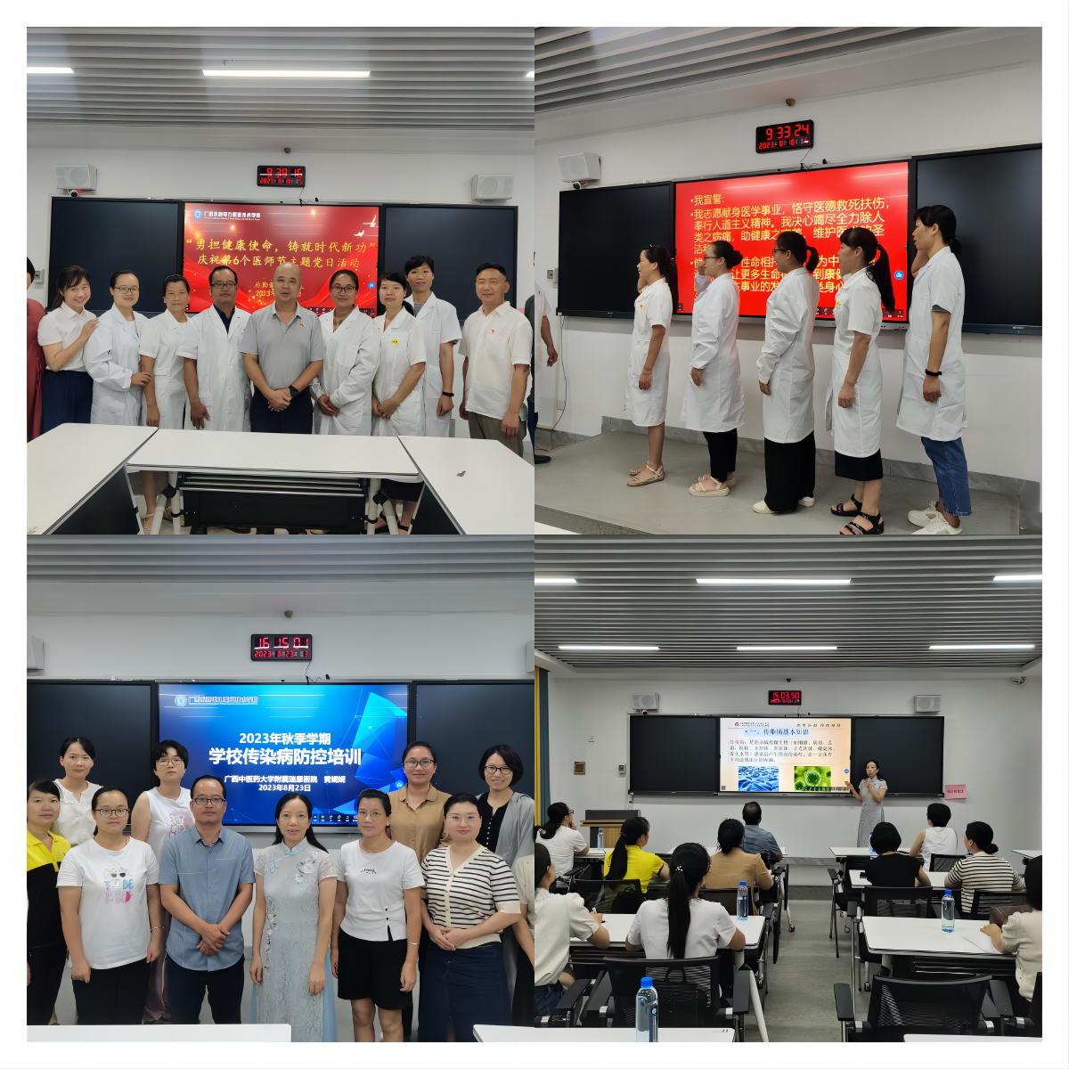 2023年暑期,各部门、各二级学院参赛师生依然奋力拼搏,为参加各类国家级、区级竞赛做准备。卫生所全体医护人员为参赛师生的健康安全默默坚守、保驾护航。在8月18日至8月23日,后勤管理处(保卫处)分别举行“勇担健康使命,铸就时代新功”中国医师节慰问座谈会与“学校传染病防控”培训,旨在以医者担当践行初心使命,做好守护师生健康的忠诚卫士。