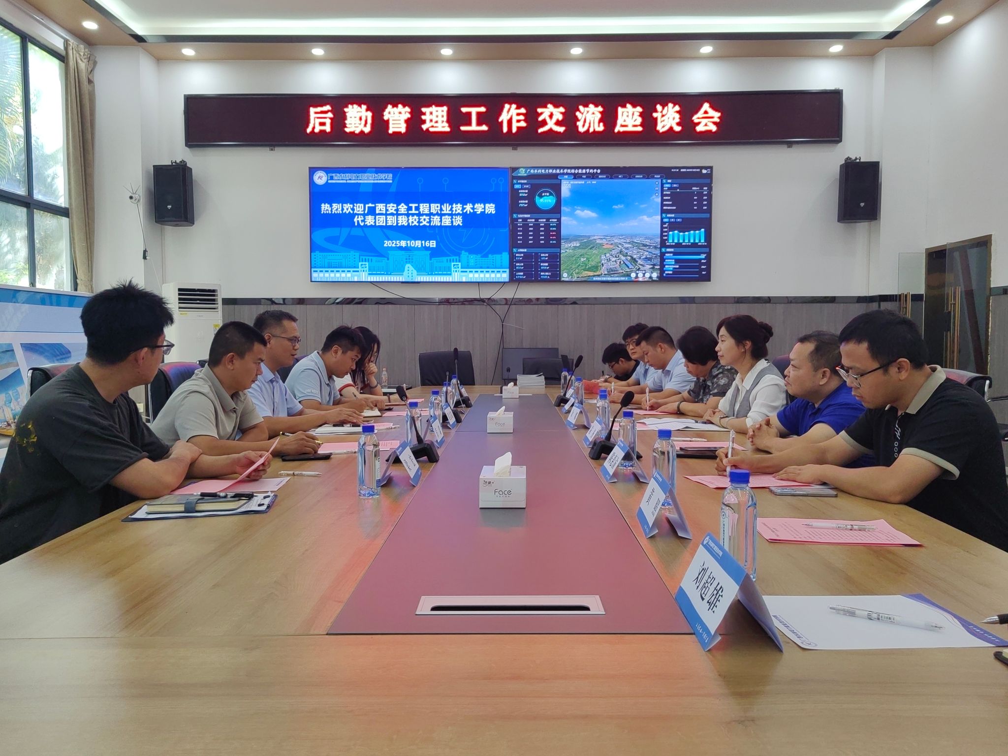 [本网讯]10月16日下午,广西安全工程职业技术学院后勤基建管理处处长黄富端一行五人到我校里建校区进行交流座谈。座谈会在节水节能监测中心举行,由我校后勤管理处(保卫处)处长余娜主持,部门相关负责人及合作企业代表参加了会议。