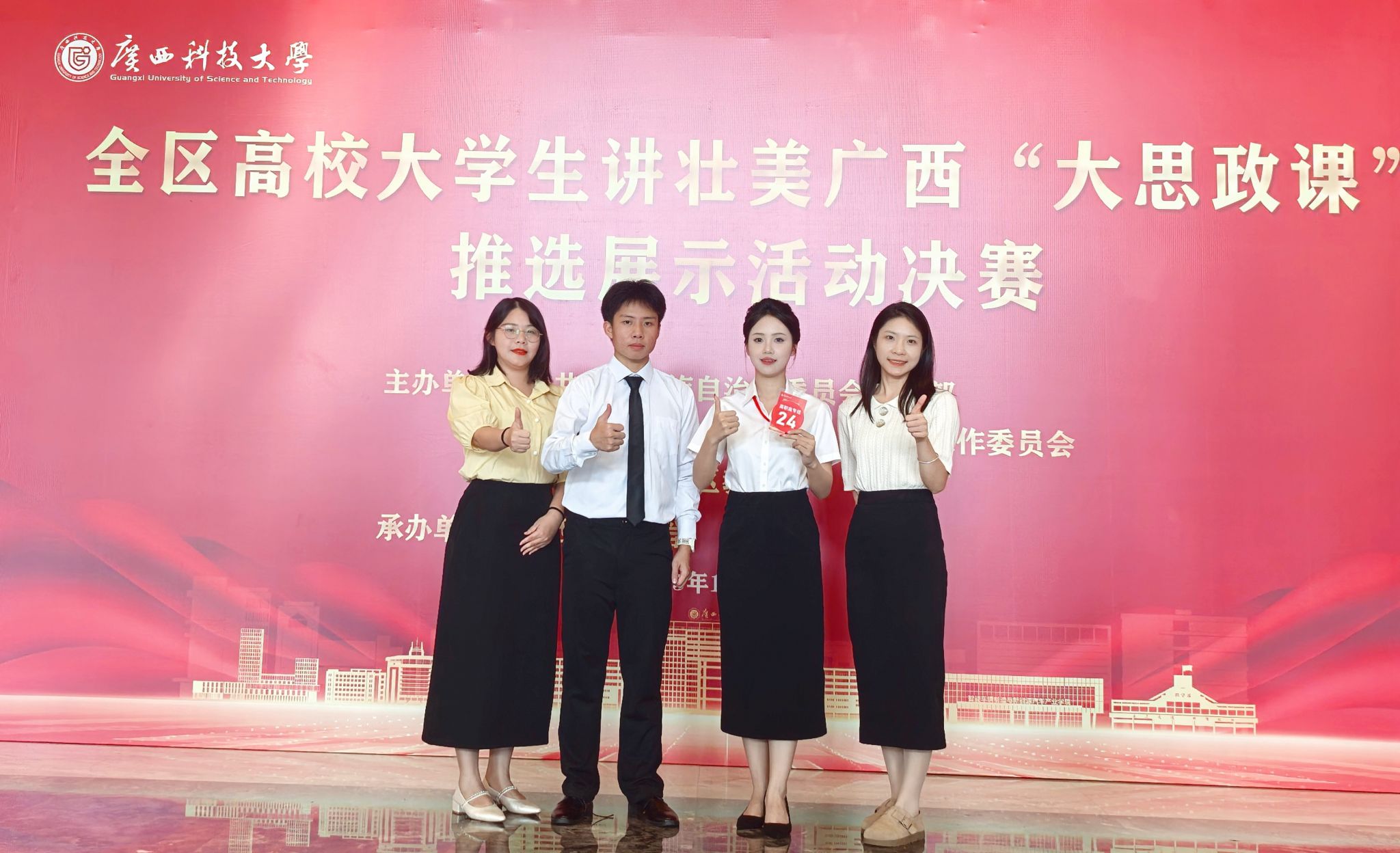 [本网讯]10月18日,由广西壮族自治区党委宣传部、自治区党委教育工委、自治区教育厅主办、广西科技大学承办的全区高校大学生讲壮美广西“大思政课”推选展示活动决赛在柳州落下帷幕,我校选送的参赛团队荣获二等奖。