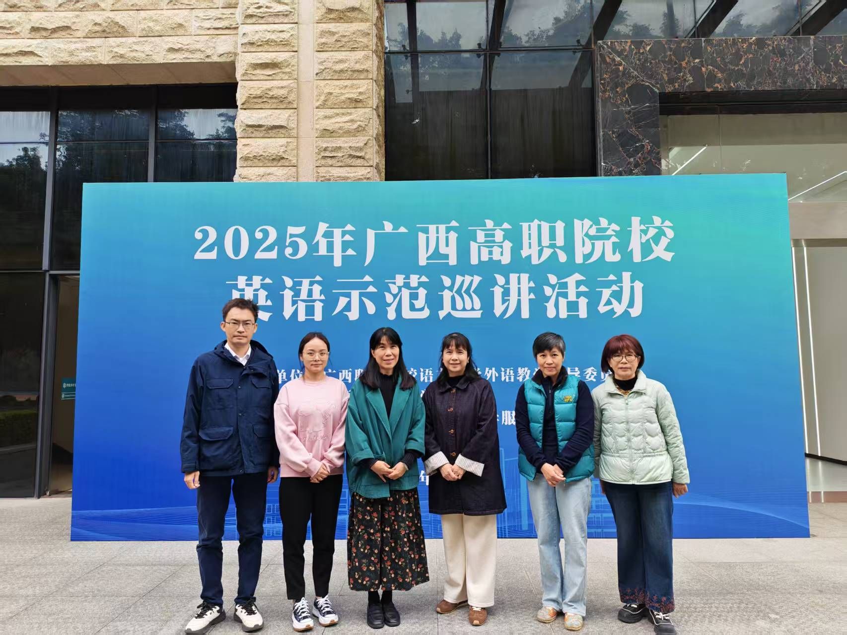 [本网讯]为深化“强国行”专项行动,推动党建与教学改革深度融合,提升语言类课程服务职业教育国际化的能力,通识教育学院党支部组织英语骨干教师于12月5日参加了由广西职业院校语文数学外语教学指导委员会主办的2025年广西高职院校英语示范巡讲活动。党员教师王力鹏以《融通·赋能·致远——语言课程服务职业教育国际化的探索与实践》为题作经验分享,展现了我校在党建引领下教育教学改革的扎实成效。