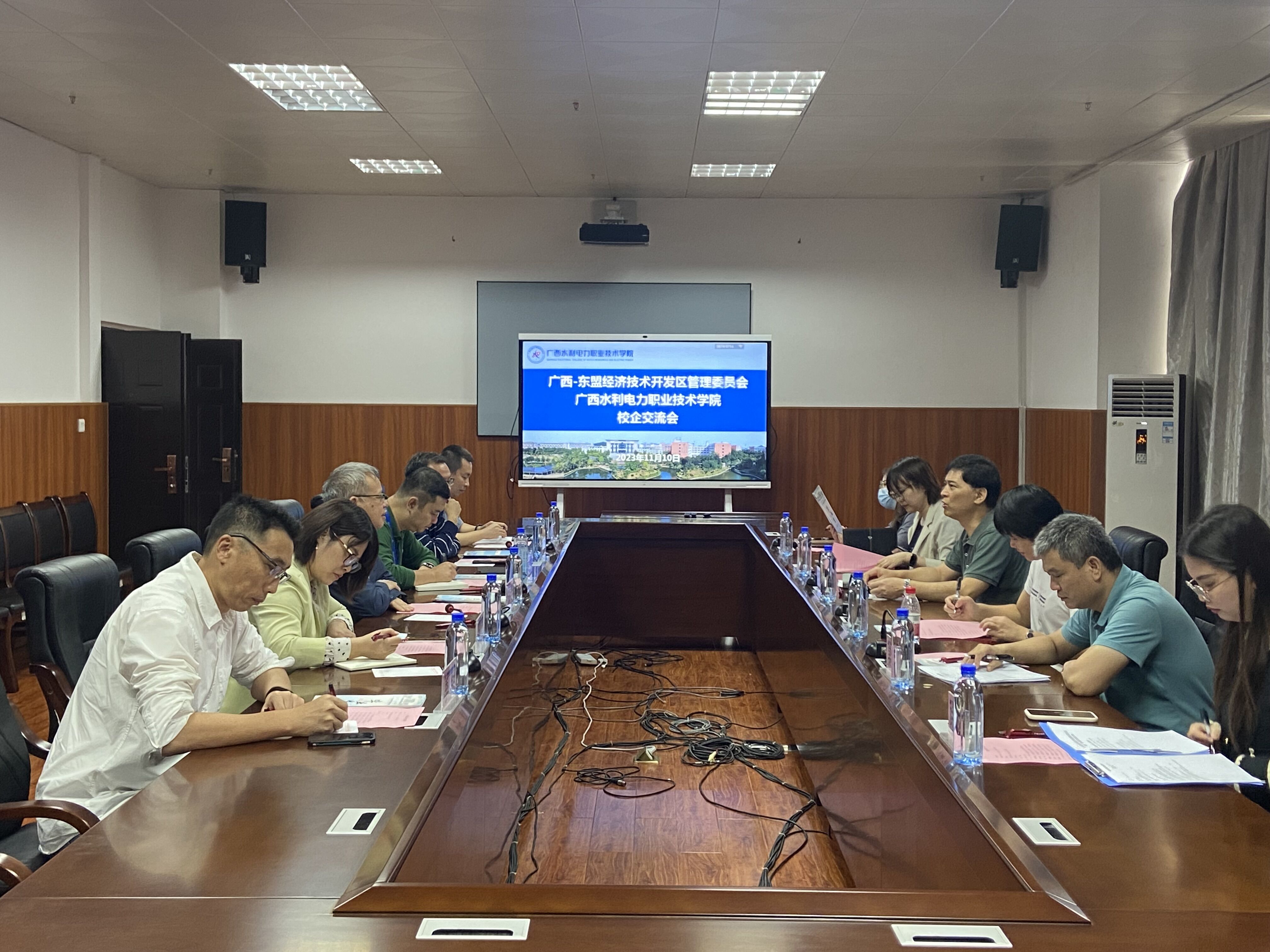 [本网讯]11月10日上午,广西-东盟经济开发区管理委员会一行人员到学校就校企合作相关事宜进行调研交流。学校副校长蒋文沛,招生与就业处,教务处,机电工程学院,自动化工程学院等相关部门负责同志参加交流会。