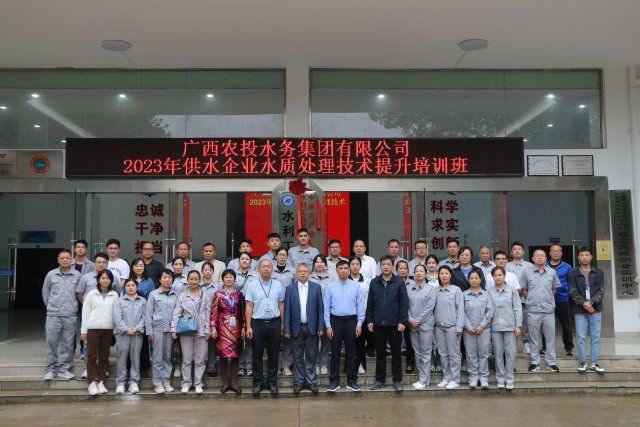 [本网讯]为全面贯彻党的二十大精神,落实中共中央办公厅、国务院办公厅《关于加强新时代高技能人才队伍建设的意见》,11月7日上午,广西农投水务集团有限公司在我校里建校区举行了2023年供水企业水质处理技术提升培训开班仪式。 学校副校长蒋文沛、水利工程学院副院长刘志枫、广西农投水务集团有限公司副总经理陶修斌、公司经营与安监管理部经理李玺及相关培训指导教师出席开班仪式。