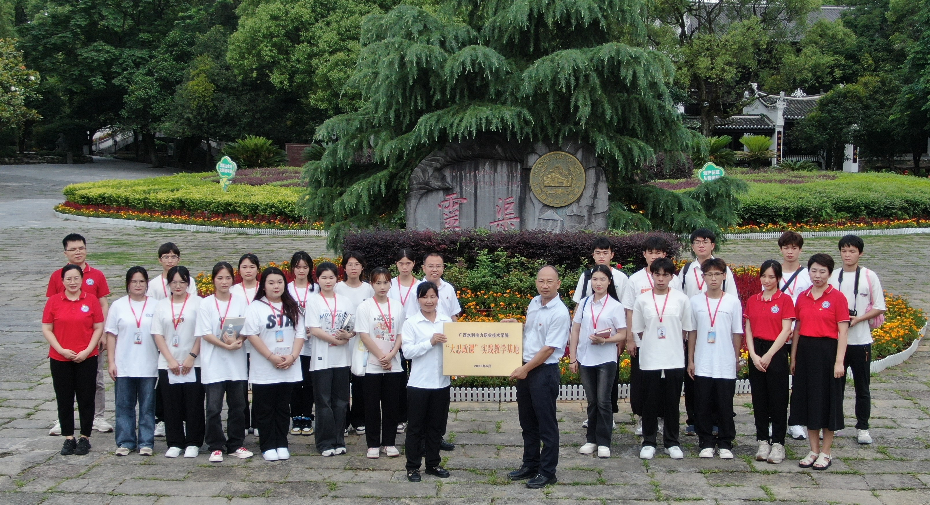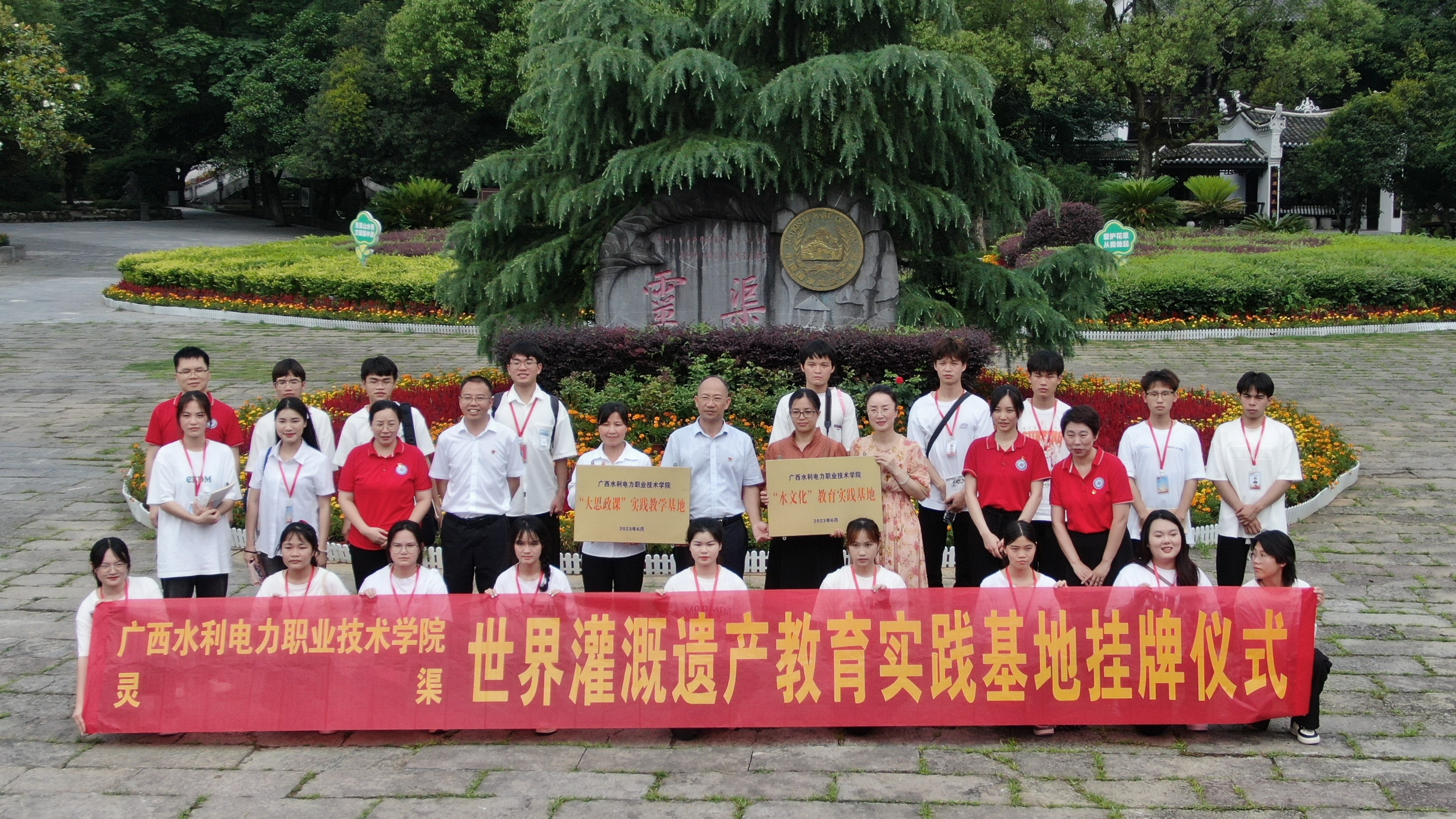 [本网讯]为深入贯彻落实习近平总书记关于“大思政课我们要善用之”的重要指示精神,把思政小课堂与社会大课堂相结合,6月8日,学校与灵渠博物院、广西灵渠胜地文化旅游投资发展有限公司举行“水文化”教育实践基地挂牌仪式。学校纪委书记邓文勇、灵渠博物院副院长邓桂荣、广西灵渠胜地文化旅游投资发展有限公司总经理助理周金妹出席挂牌仪式,三方相关部门领导、我校马克思主义学院师生代表共同参加仪式。