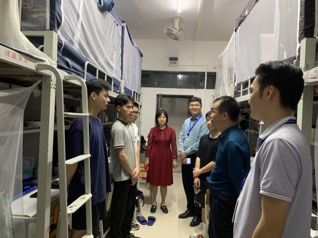 [本网讯]正值清明节来临之际,为做好学生安全管理工作,4月4日晚,学校党委副书记侯宗毅、土木建筑工程学院院长吴美琼、招生与就业处处长张翔、宿舍管理科科长禤立群以及辅导员深入学生公寓开展安全隐患排查和慰问走访,了解学生思想状况。