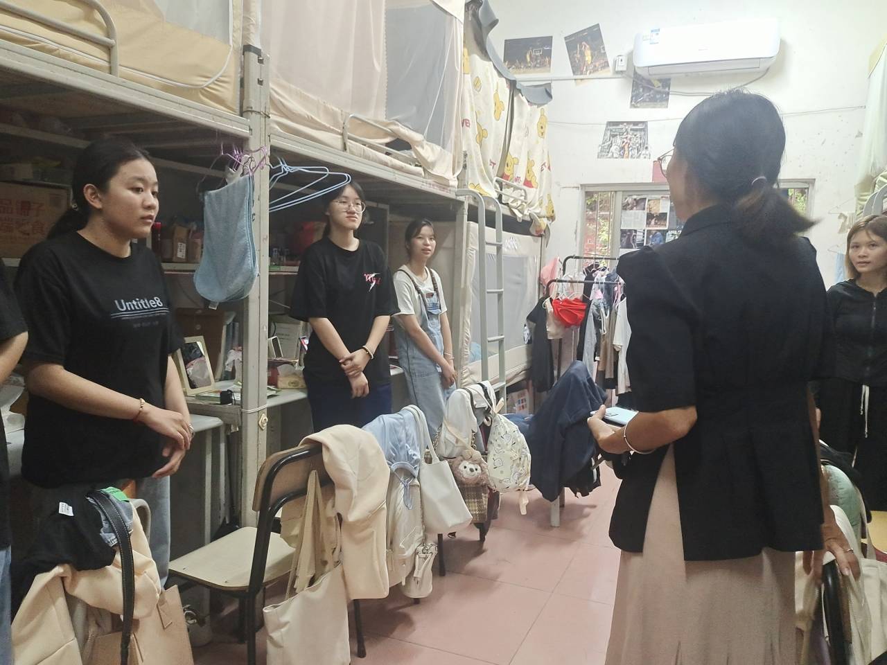 走访中,辅导员老师王小会与学生强调,在各种传染病高发期间,要高度重视宿舍的安全和卫生,勤开窗通风,保持宿舍干净整洁,做好个人卫生防护。要积极排查宿舍存在的安全隐患,严格遵守学校安全用电的管理,增强安全防患意识,共同建立安全温馨的宿舍环境,争创文明、和谐宿舍。