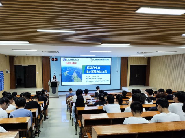 [本网讯]为推动“红心育人 创新领航”党建品牌建设,加强党建与业务工作的互融互动,通过科普活动推广普及新能源开发与应用技术,10月25日晚,机电工程学院教工党支部与广西机械工程学会党支部积极沟通,联合陈炳森名师工作室、何玲艳博士工作室举办了一场题为“超级充电宝——抽水蓄能电站之美”的科普讲座,讲座由何玲艳博士主讲,共有130多名师生代表参加。