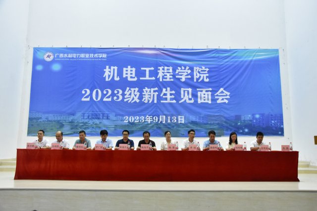 [本网讯]9月13日晚,机电工程学院在里建校区体育馆成功举行2023级新生见面会,学院院长陆尚平、党总支书记杨青、副院长陈韶光、副院长季锐、办公室主任罗广权出席会议,各教学团队负责人、专业负责人、骨干教师、23级新生辅导员及全体23级新生参会,会议由学院团委书记韦微主持。