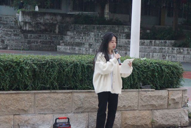 在庄严的国旗下,学生代表麦雪柔、教师代表周豪分别进行国旗下的讲话。麦雪柔同学表示:“我们要勇于创新,敢于担当。在这个充满挑战的时代,我们要勇敢地追求梦想,敢于担当责任,为国家的发展开拓新的道路。我们要坚信,只有不断创新,我们才能为国家的发展注入新的活力,为民族的复兴提供源源不断的动力。”周豪老师激励同学们说:“无论未来的路有多么崎岖和艰难,只要我们保持一颗坚定的心和勇往直前的勇气,就一定能够克服一切困难、实现自己的梦想。”