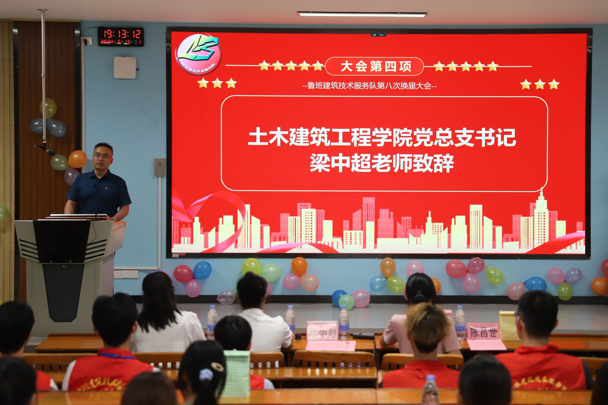 最后,梁中超书记讲话,他对协会过去一年的各项工作给予了充分肯定,对新一任会干们更是寄予厚望,同时勉励广大同学们继承和发扬鲁班工匠精神,用扎实的志愿服务推动学院志愿服务工作迈上新台阶。