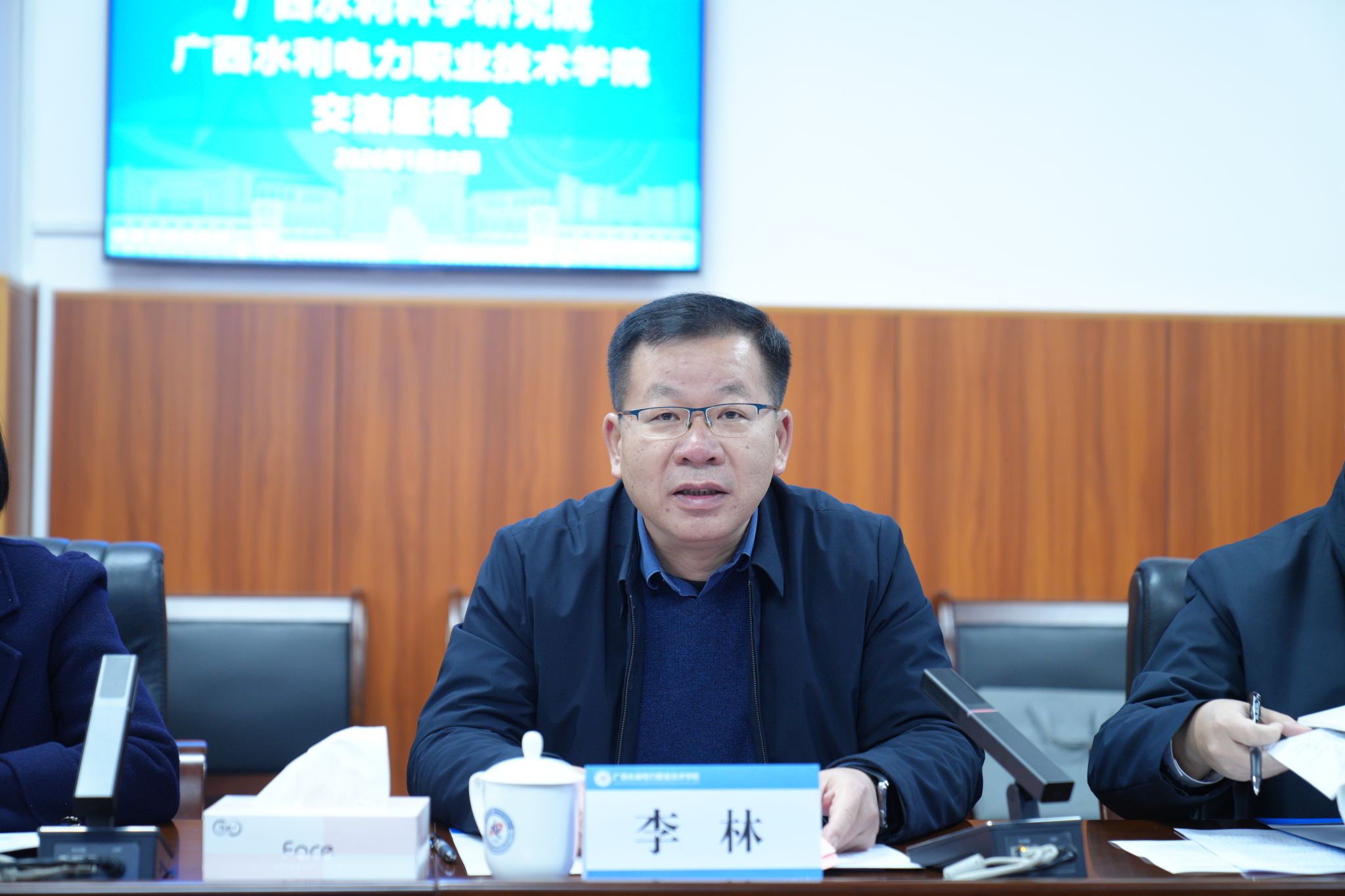 随后,双方在图书馆三楼会议室举行座谈会。李林对广西壮族自治区水利科学研究院的到访表示热烈欢迎。他围绕学校的办学特色、科研基础,介绍了学校“十五五”期间的办学目标,分享了学校高质量发展过程中面临的短板问题,希望能充分利用水科院的广西重点实验室和工程项目,给学校高层次人才搭建实践平台,共同开展科研合作,提升学校的科研实力。
