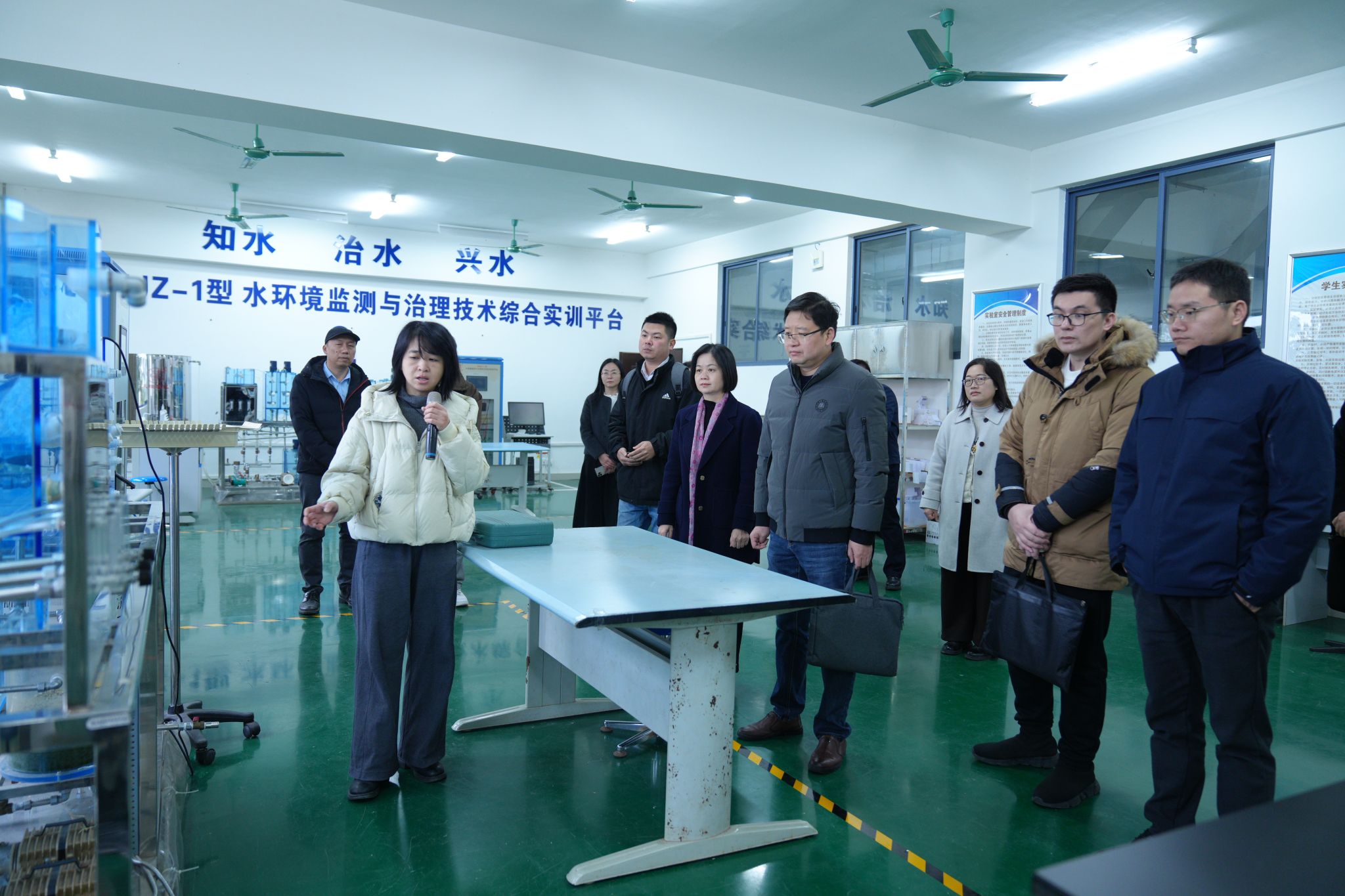黄凯一行实地考察了土木建筑工程学院智能建造产教融合实践中心,水利工程学院水处理中心、仪器分析实验室、产教融合展示中心、人工模拟降雨实训场、水利施工实训场、径流小区、水工建筑实训场、广西节水科普教育基地等多个具有代表性的实践教学与科研创新场所。