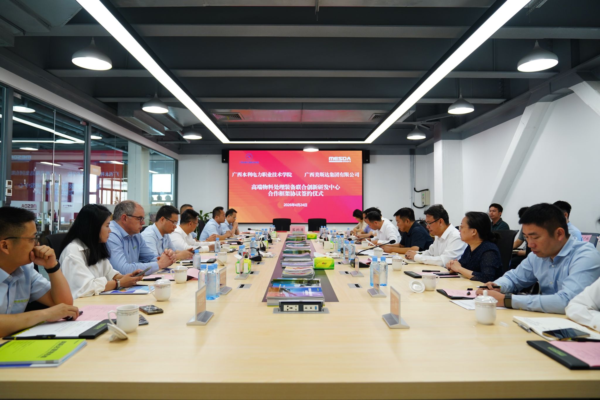自治区水利厅科技处、人事处领导,学校发展规划与科技开发处、招生就业处、机电工程学院负责同志,广西美斯达集团相关部门负责人参加活动。(何科宇/文 李浩/图)