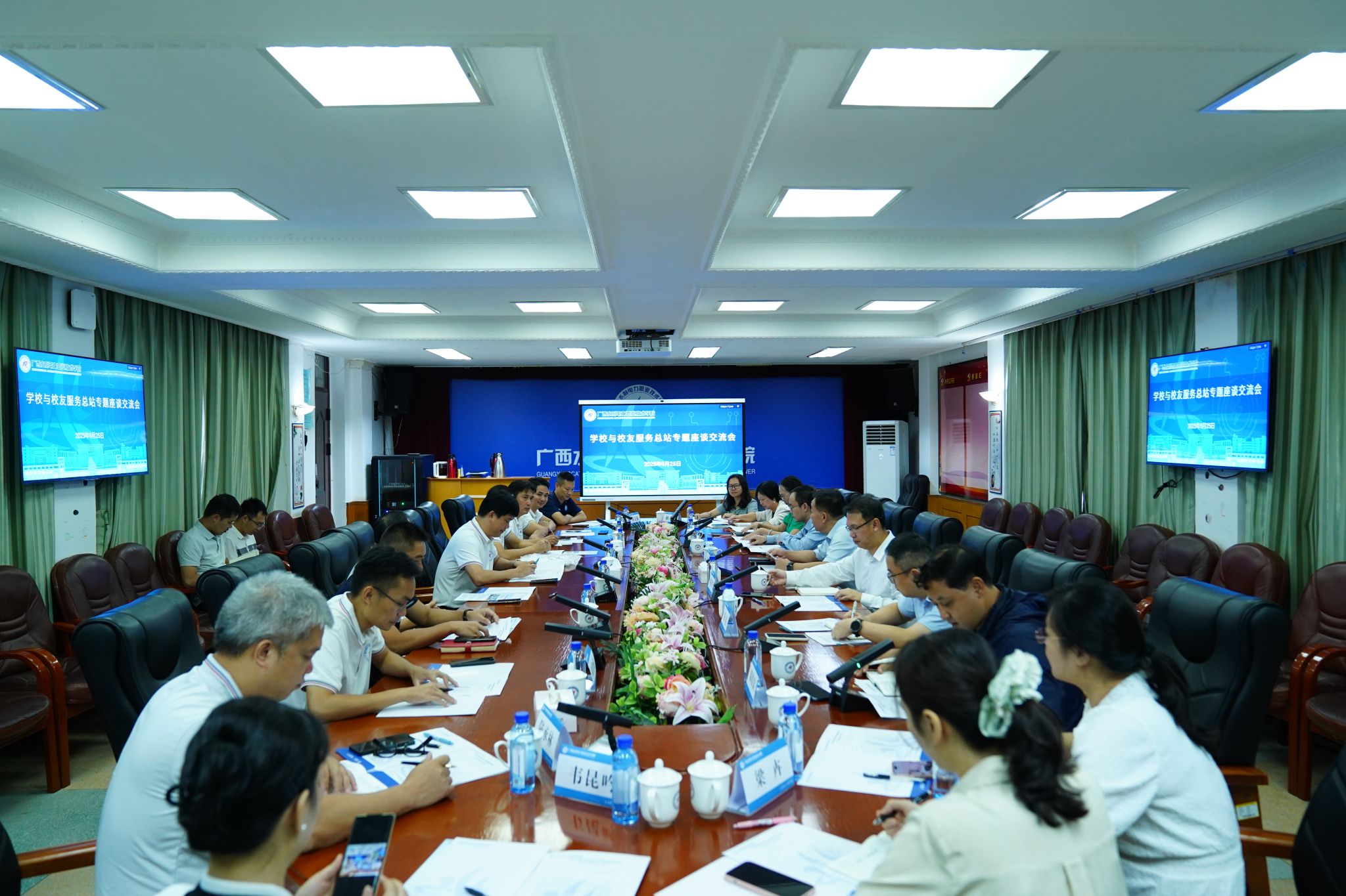 [本网讯]9月25日上午,学校与校友服务总站专题座谈交流会在长堽校区办公楼三楼会议室举行。学校党委书记李林、校长刘存香、校友服务总站第二届理事会会长陈军出席会议。会议由学校招生与就业处处长邓佳富主持。