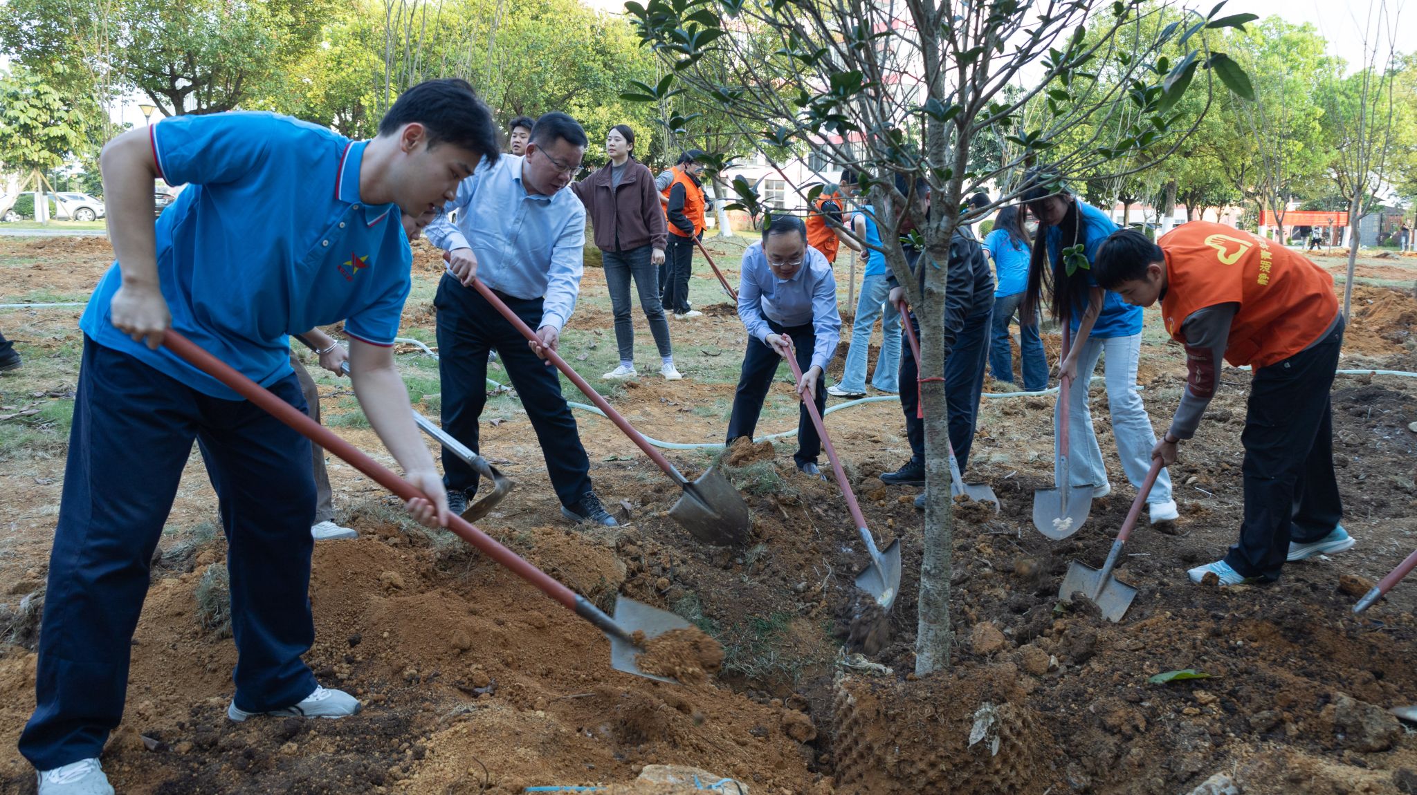 集中植树活动如火如荼开展的同时,各项子活动也在校园各处同步进行。“绿影·生机校园”摄影展用镜头定格师生环保行动;“青力青为·共护家园”沙龙邀请老师分享绿色低碳经验;“静听自然”观影和“书香伴绿意”阅读分享会引导学生在思考中汲取生态智慧。“指尖添绿·云上先锋”蚂蚁森林合种吸引数百名学生组队参与;“叶落新生”创意拼贴画赋予落叶新生命;“寻踪觅绿”定向寻宝让同学们在探索中发现校园之美。各二级学院及学生社团也结合特色开展了环保知识竞赛、低碳创意作品展等形式多样的风采展示活动。