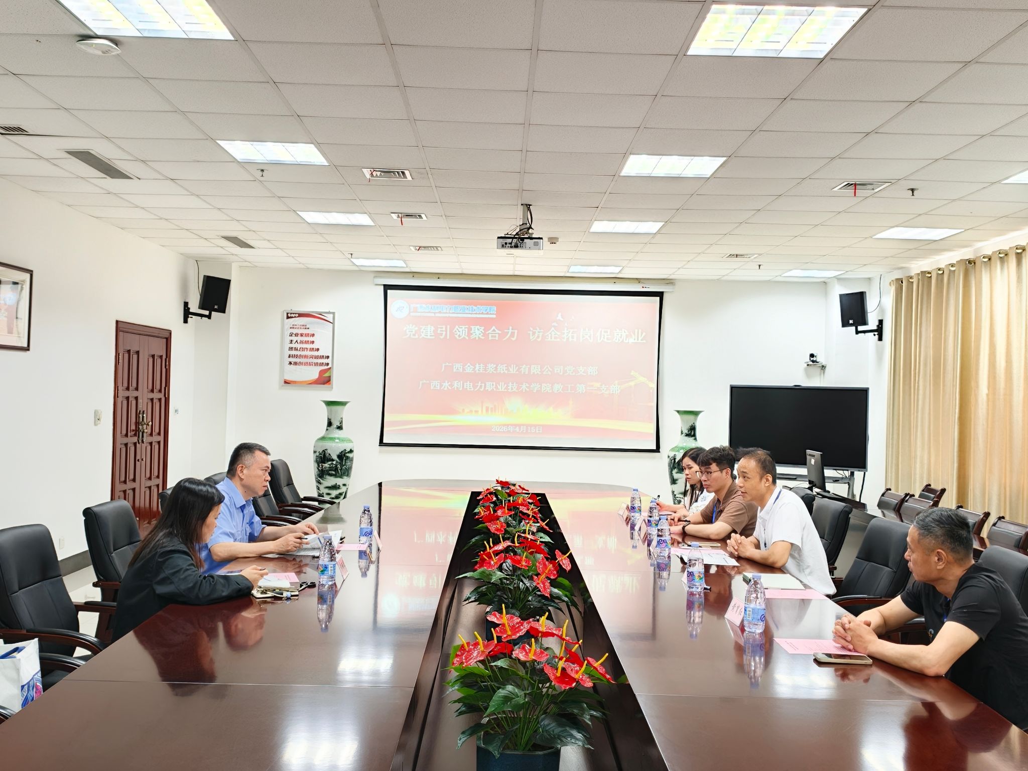 [本网讯]为深入贯彻党中央稳就业、促发展决策部署,以高质量党建引领产教融合深度发展,4月15日上午,电力工程学院党总支书记罗宇强带队,率就业干事赵莹、专任教师陈至朋、辅导员丁丽丽一行四人,赴广西金桂浆纸业有限公司开展“访企拓岗”调研交流,与企业人力资源总监吕静舟及相关部门负责人共商党建赋能校企合作新路径。
