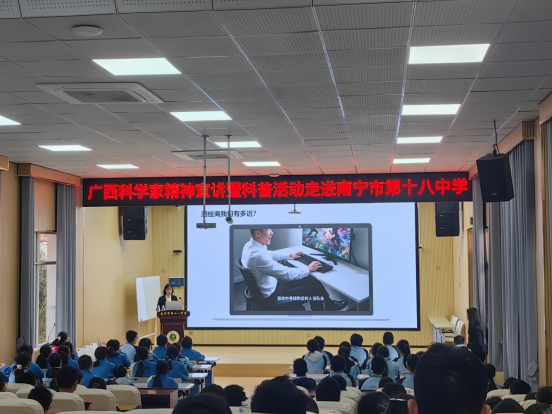[本网讯]11月21日,广西科学家精神宣讲团走进南宁市第十八中学,以“以科学为笔,以山河为纸,绘就新时代的中国高度”为主题,通过“精神解读+科技实践+院士榜样”三维宣讲模式,为该校师生带来了一场兼具思想深度与实践温度的科学盛宴。