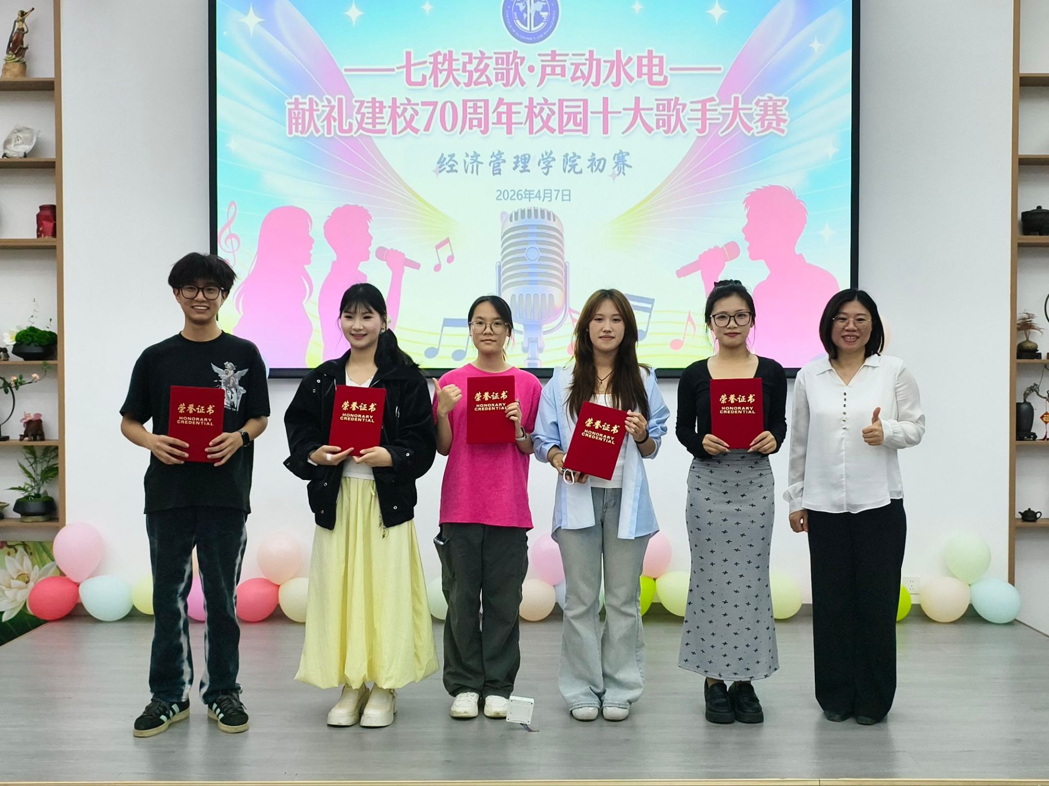 [本网讯]为献礼学校建校70周年,弘扬水电精神,4月7日晚,经济管理学院"七秩弦歌·声动水电"第二十四届校园十大歌手大赛初赛在经管实训楼一楼茶艺室顺利举行。经济管理学院院长唐锋、辅导员黄余胜莅临现场,学院团委书记冯文、团委副书记刘义蕾担任专业评委,学院2024级、2025级学子积极参与。