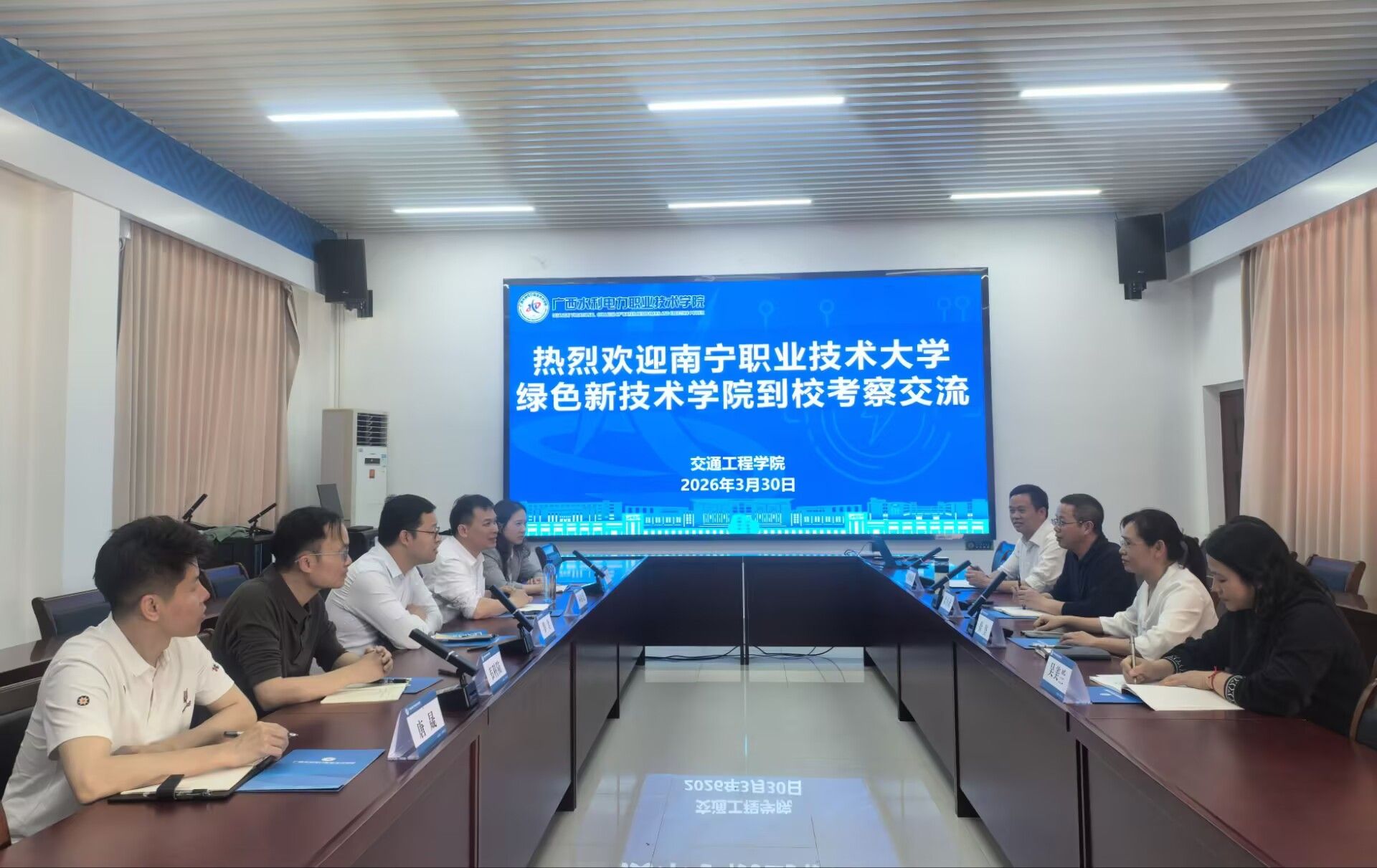 [本网讯]3月30日下午,南宁职业技术大学绿色新技术学院党委书记罗金一行5人莅临交通工程学院开展考察交流活动。双方围绕专业建设发展、校企合作及产教融合等议题展开深入探讨。