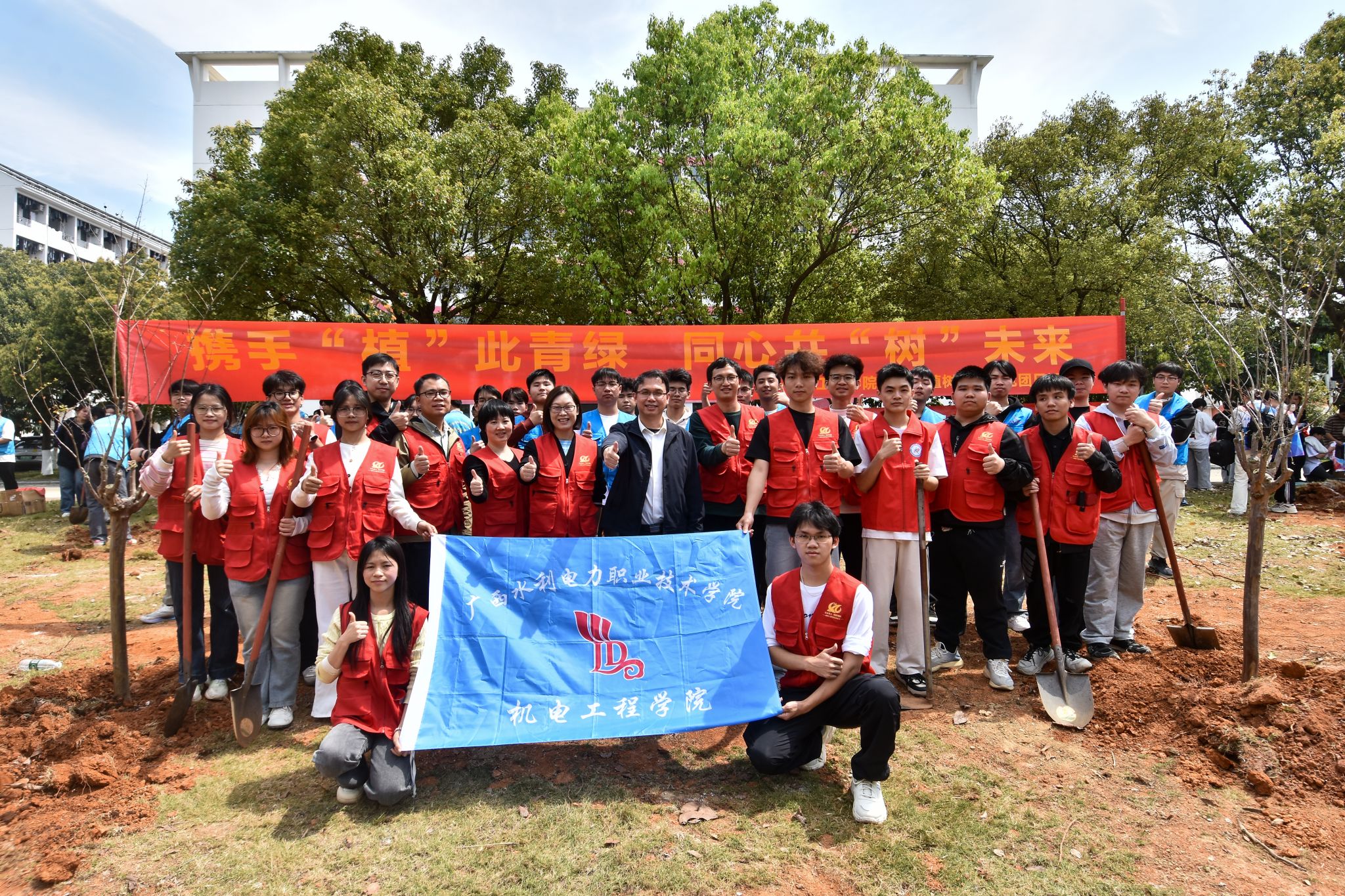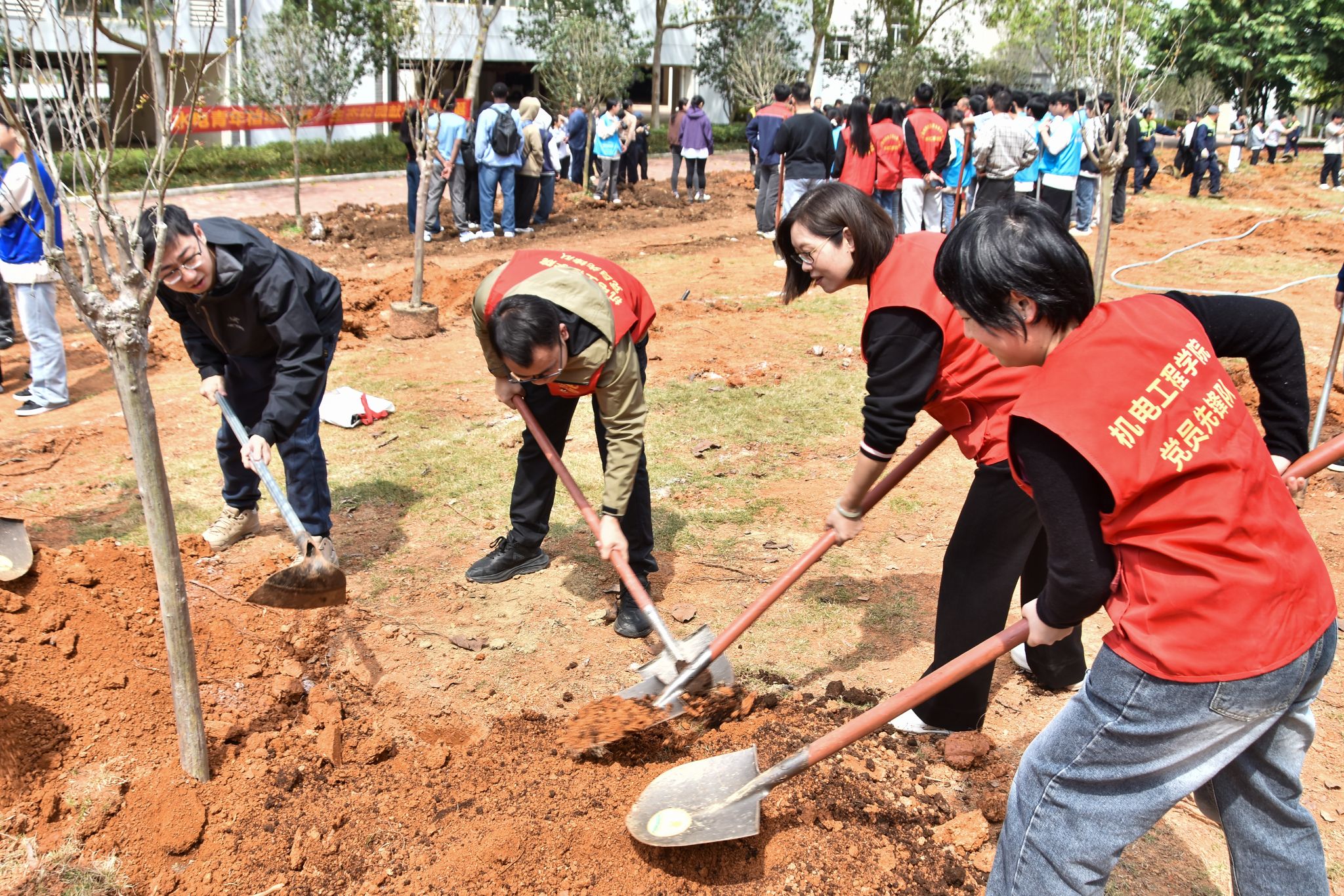 为深入贯彻落实党的二十大精神和习近平生态文明思想,推动劳动教育与生态文明教育深度融合,3月12日,机电工程学院组织开展“携手‘植’此青绿 同心共‘树’未来”植树节主题党团日活动。学院党总支书记杨青,学生党支部成员、团委学生会师生代表共计60余人参与此次活动。