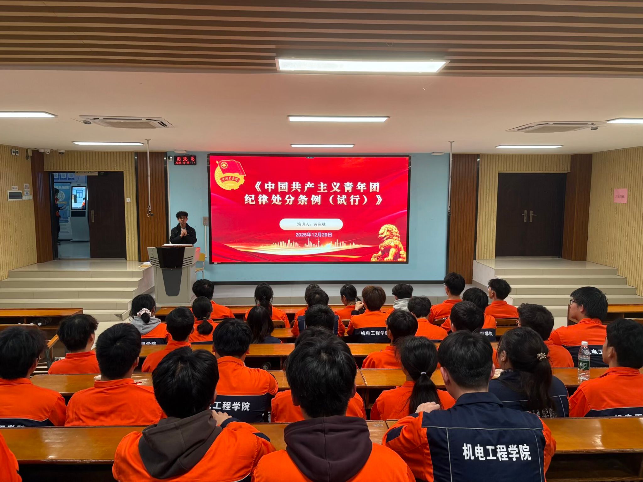 本次团课进一步强化了纪律教育的针对性和实效性。接下来,机电工程学院各级团组织将继续推动《条例》学习常态化,通过知识竞赛、情景模拟等多种形式,促进纪律意识深入人心,为培养担当民族复兴大任的时代新人夯实基础。