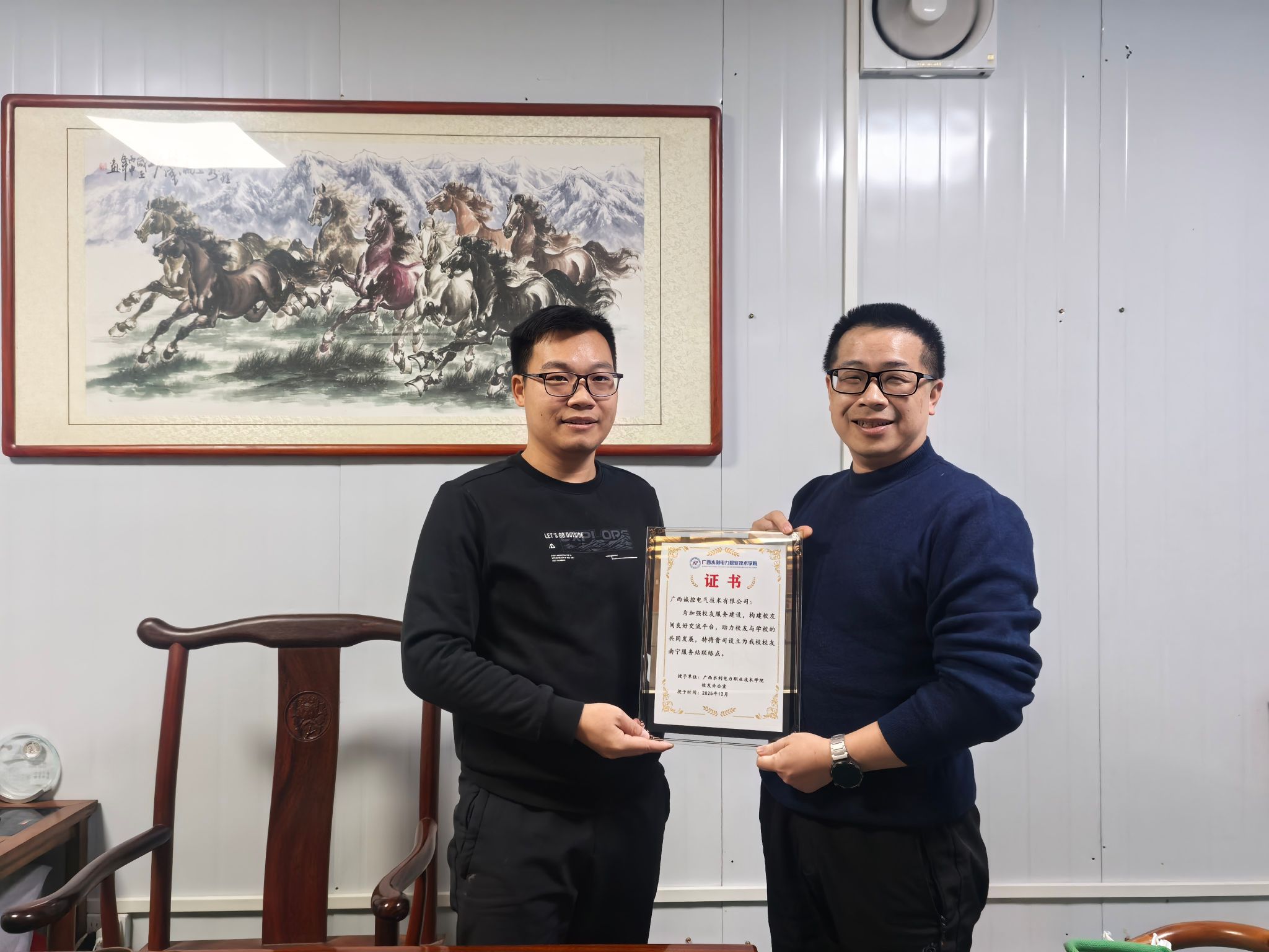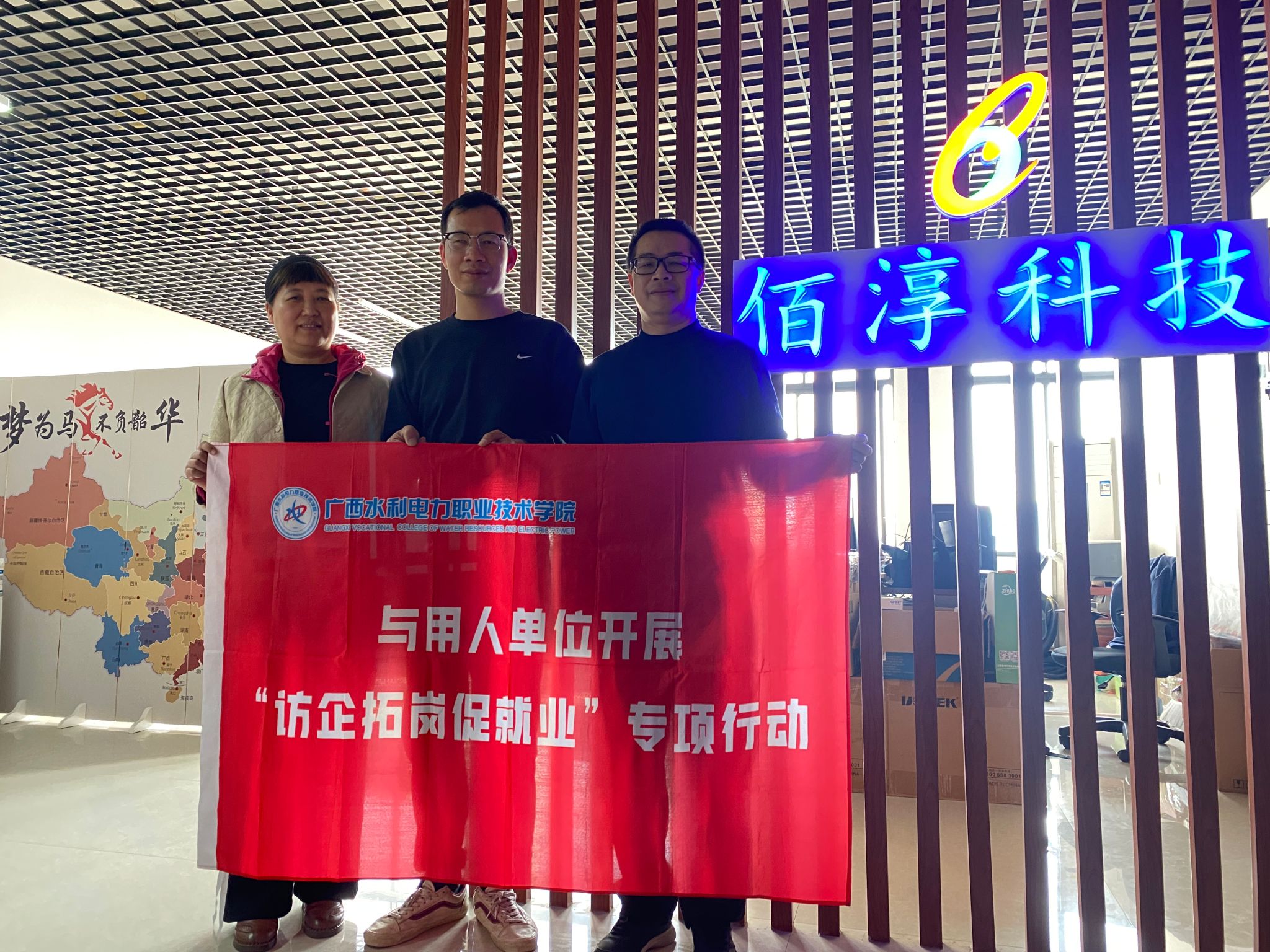 为深化产教融合、拓宽毕业生就业渠道,12月26日上午,机电工程学院副院长陈韶光一行2人先后前往南宁佰淳科技有限公司、广西诚控电气技术有限公司两家校友企业开展走访调研,并代表学院为两家企业正式送上南宁校友联络点授牌证书。