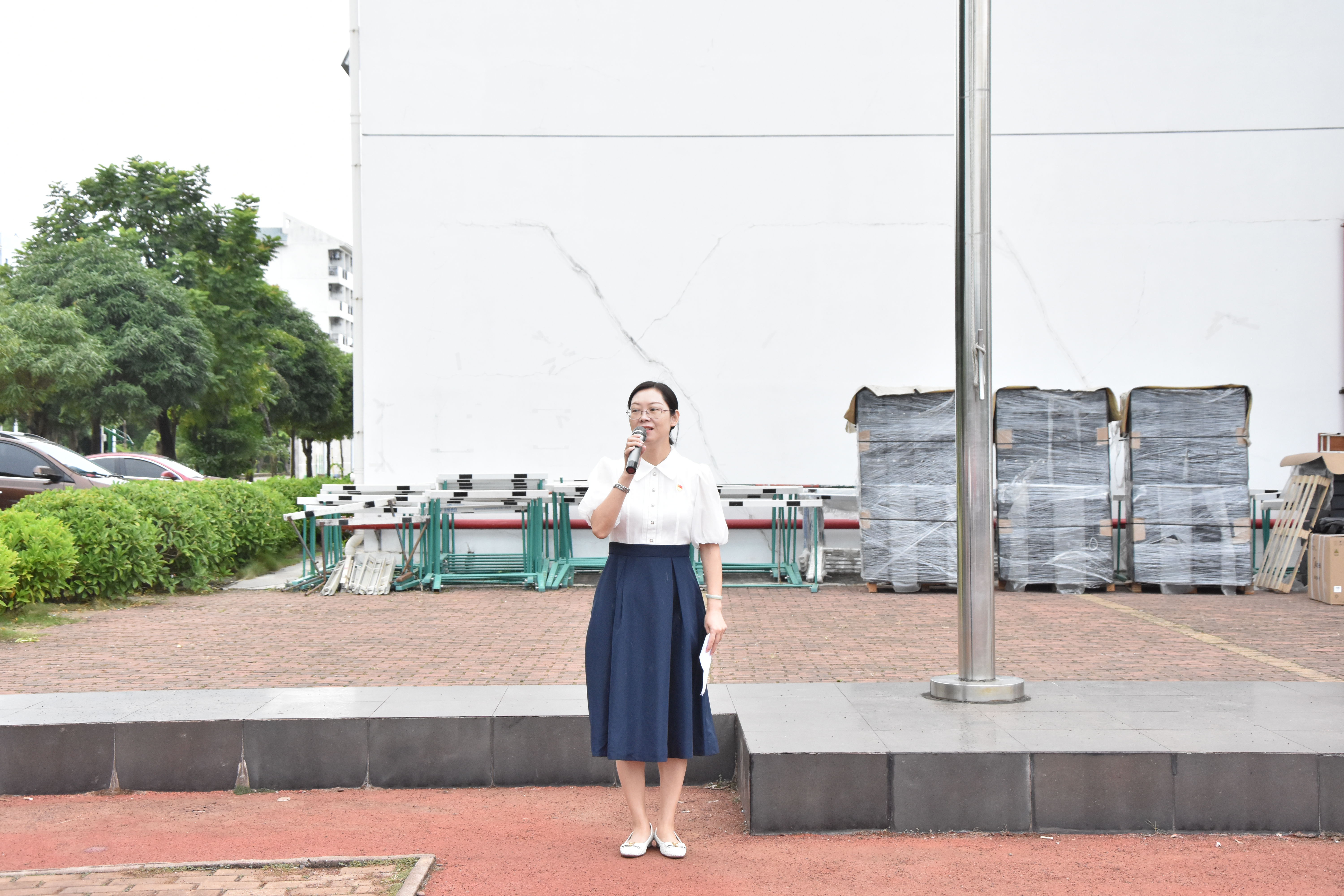 学生代表梁水丽和唐隆雨在国旗下发出《请党放心 强国有我》的号召,指出一代人有一代人的长征,属于当代青年学生的长征之路正在延伸。希望学院广大的青年学生能心中有梦,更要付诸行动,让奋斗成为青春最亮丽的底色。升国旗仪式在全体师生嘹亮的《我和我的祖国》歌声中顺利举行。