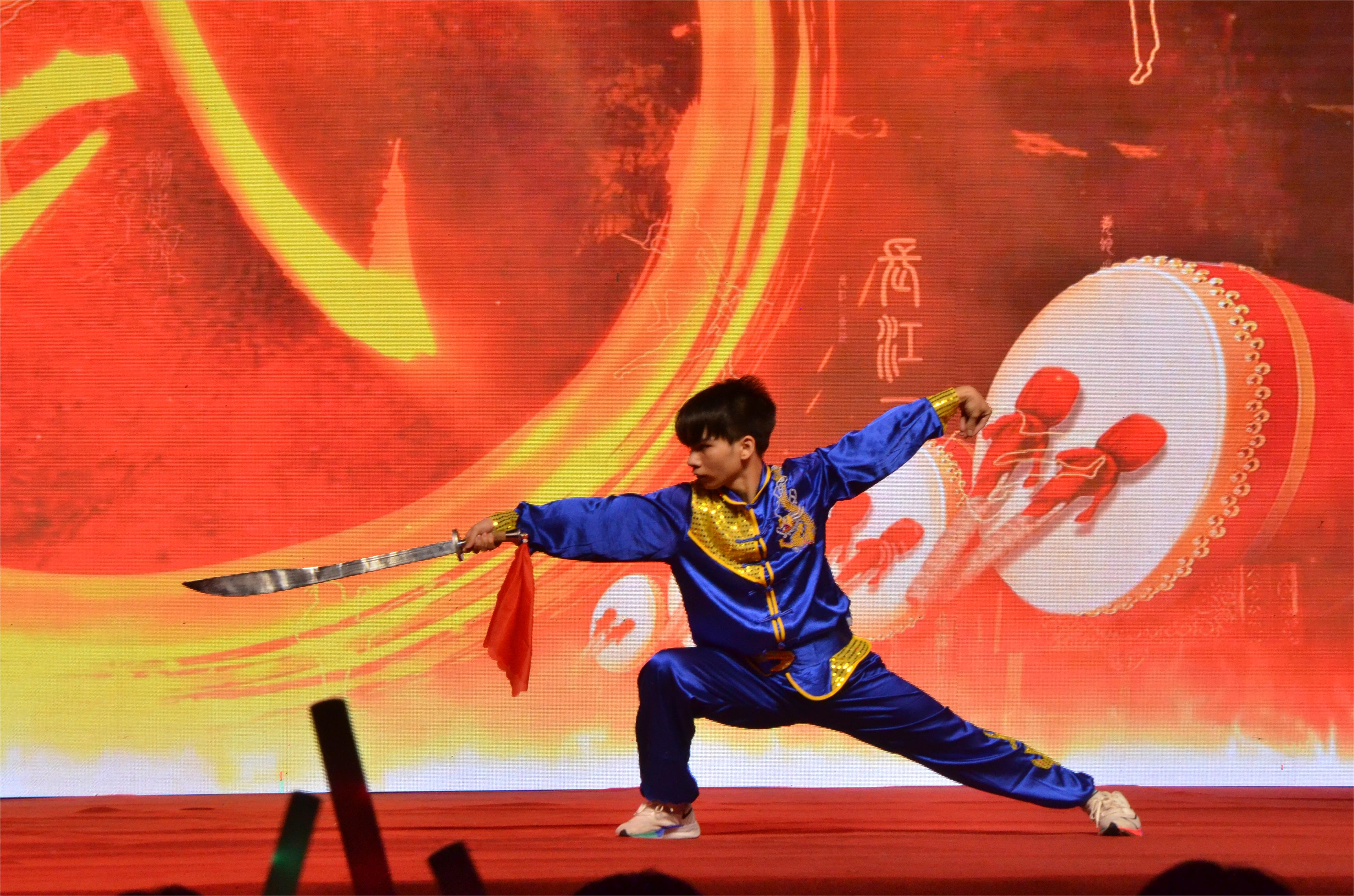 学校校长李林出席晚会,并为机电工程学院第五届“学习强国活力团支部”颁奖。此次晚会分为三个篇章,分别为“青春心向党”“花好月圆夜”“家国万里情”,共计20个节目。晚会在学校龙狮协会带来的《醒狮迎新》节目的锣鼓声中拉开帷幕,节目形式多样,有退役士兵复学大学生带来的风采展示《渴望光荣》;有武术表演《功夫小子》;有老师和学生联袂带来的小合唱《感恩的心》;有汉服秀《霓裳羽衣》;有由机电工程学院老师们带来的民族服装展示《最炫民族风》;也有热情洋溢的街舞、乐队演出及优美的舞蹈《万疆》等彰显中华优秀传统文化及青春现代类的节目。