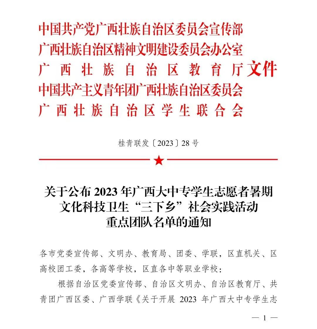 广西大中专学生志愿者暑期文化科技卫生“三下乡”社会实践活动重点团队