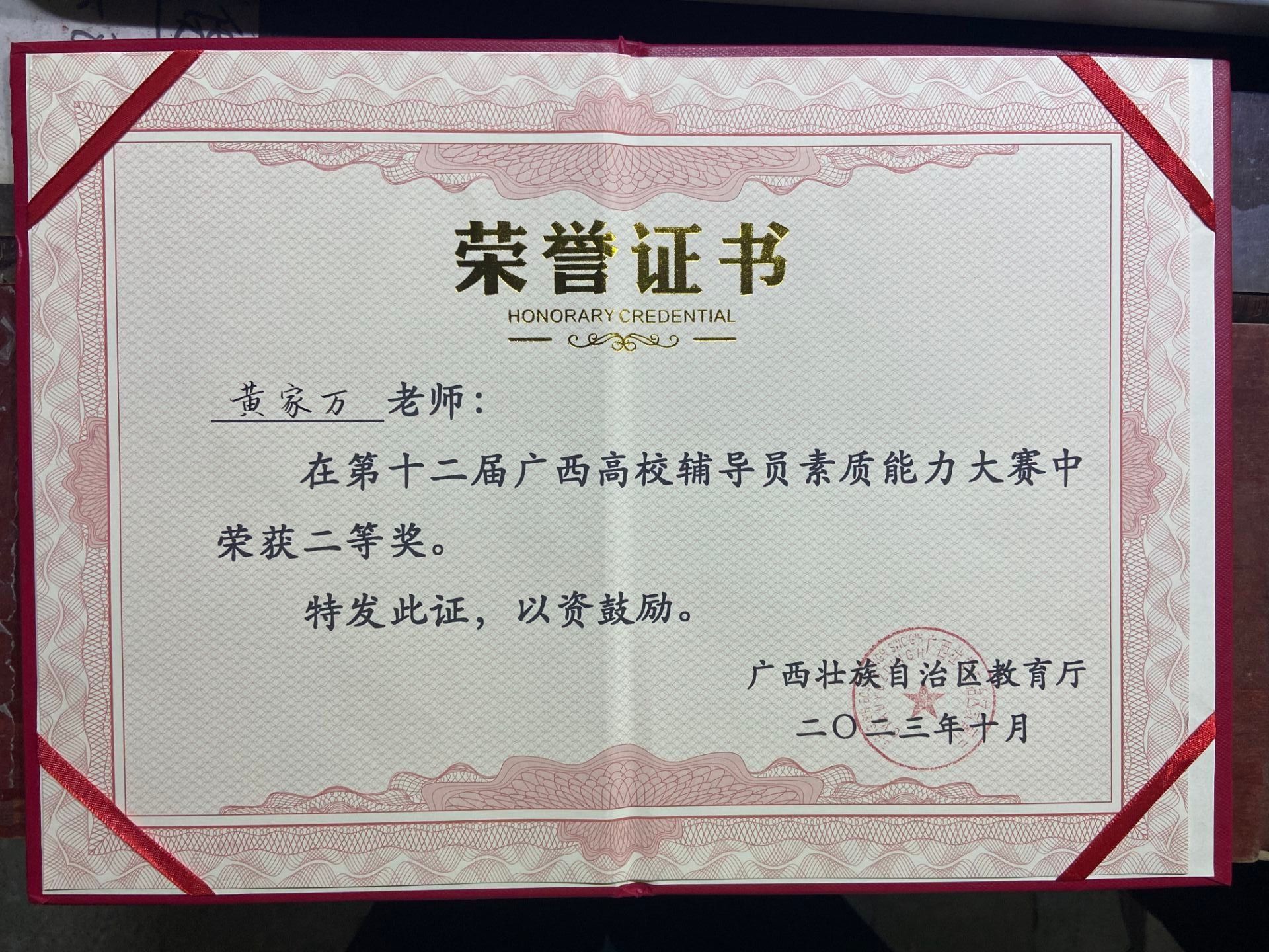 教师获第十二届广西高校辅导员素质能力大赛二等奖