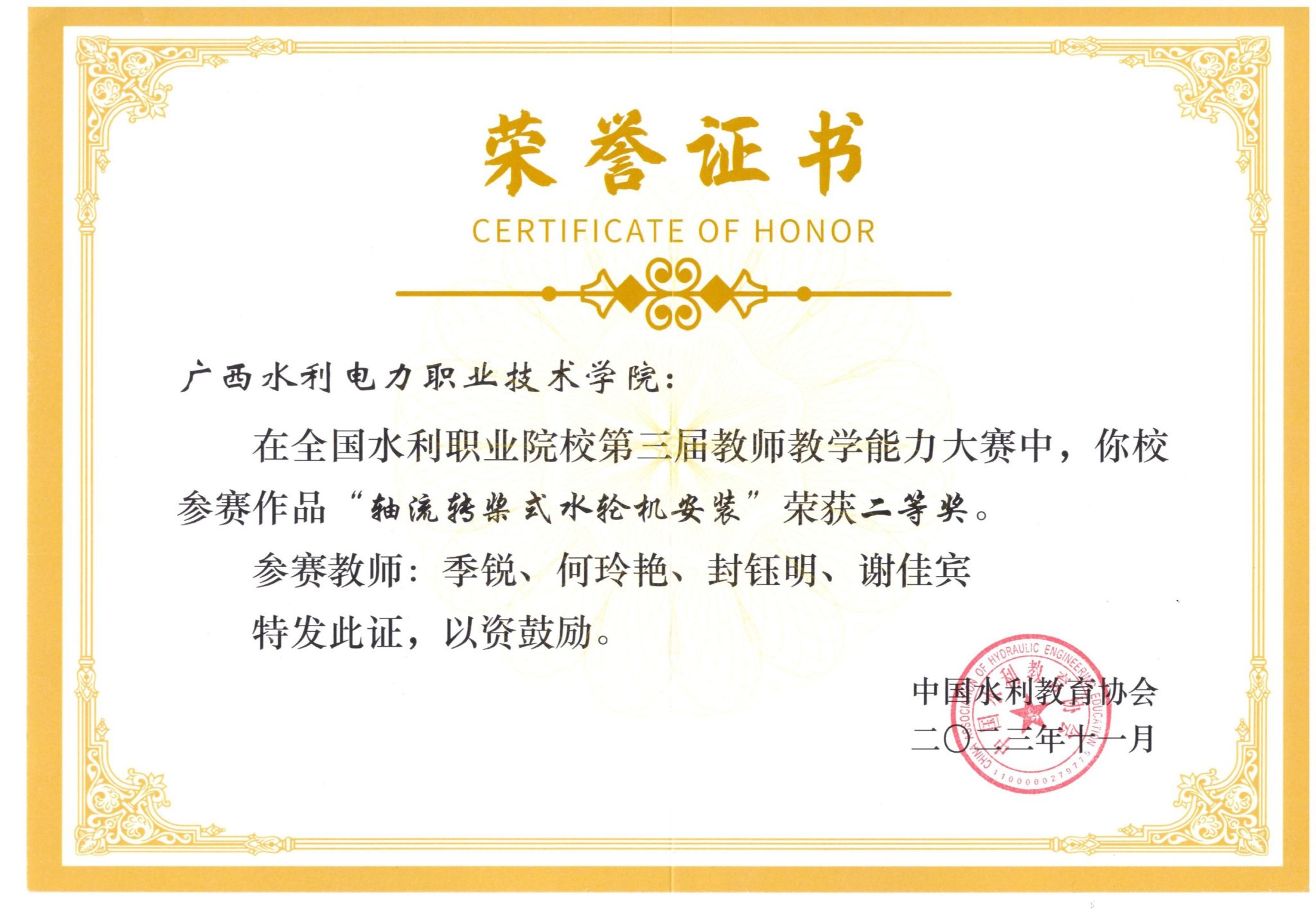 2023年全国水利职业院第三届校教师教学能力大赛二等奖
