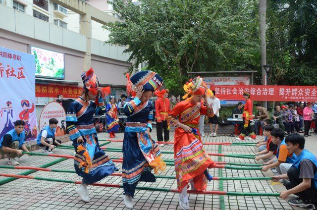 本次活动内容丰富多彩,不仅有民俗体验活动,也有民族文艺汇演展示。在民俗体验活动中,社区居民和学院师生通过参加三人板鞋、抛绣球、跳竹竿舞和送五色糯米饭等活动,深入体验了民族风俗;在文艺汇演活动中,三句半、双人舞、小品、群舞、山歌等形式多样的文艺节目展示出了不同民族的优秀文化。