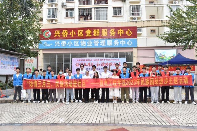 [本网讯]为深入学习贯彻习近平新时代中国特色社会主义思想,铸牢中华民族共同体意识,不断增强各族干部群众对伟大祖国、中华民族、中华文化、中国共产党、中国特色社会主义的认同,加快建设壮美广西、共圆复兴梦想而努力奋斗,4月16日上午,机电工程学院携手兴侨社区开展“浓情三月三,和谐兴侨社区”民族团结进步主题活动。