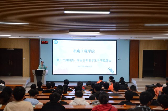 为更好的推动机电工程学院团学组织各项工作的有序开展,机电工程学院团委、学生会于2月27日晚在里建校区教学楼阶梯202教室举行新老团学学生骨干见面会。