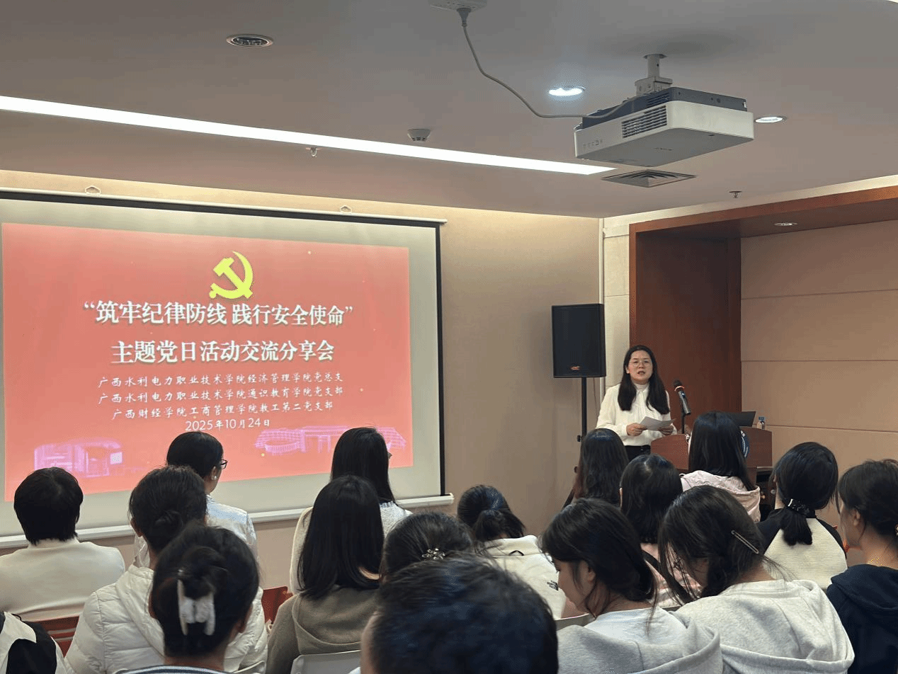 参观活动结束后,全体党员齐聚博物馆会议室,开展了党建工作经验交流活动。广西财经学院工商管理学院副院长、教工第二党支部书记陆丹丹分享了该支部在党建工作中的创新做法和成功经验。这些经验为各个党支部提供了有益的借鉴。