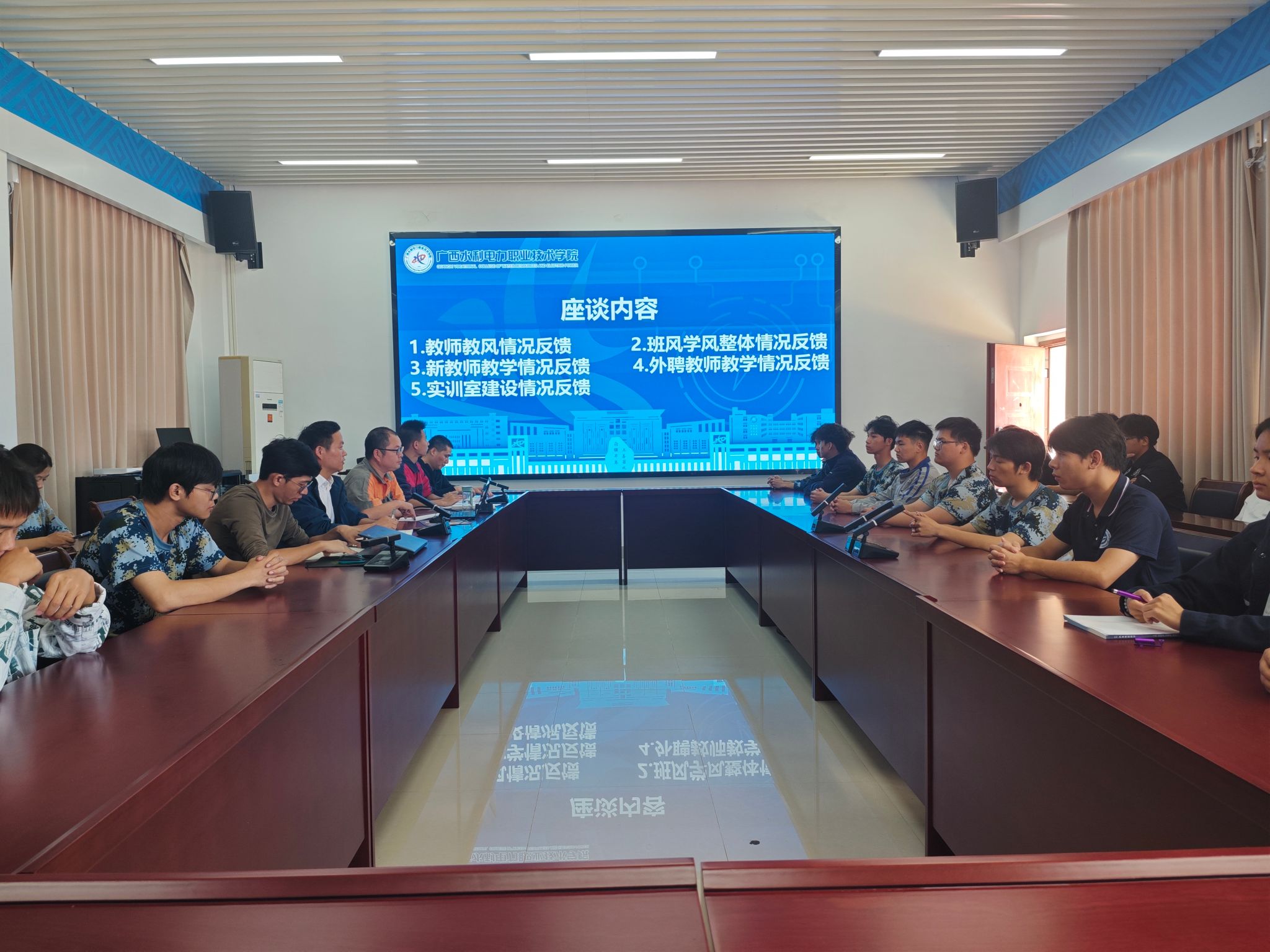座谈会上,各班学生代表结合班级实际,围绕教风学风建设、教学组织实施、实践教学环节、课堂教学效果等核心议题依次发言,客观反馈了任课教师的教学情况、班级学风建设成效等,并对学院教学环境、实训设施配置、教师实践指导能力及教学管理服务给予充分肯定。针对学生发展需求,学生代表们就技能考证培训体系、专升本升学规划指导、第二课堂活动多样性等方面提出建设性建议,同时就后勤服务保障中的宿舍报修响应效率、生活用水供应等问题进行了反馈。