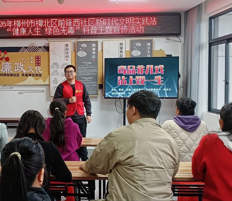 志愿者在社区开展禁毒宣传