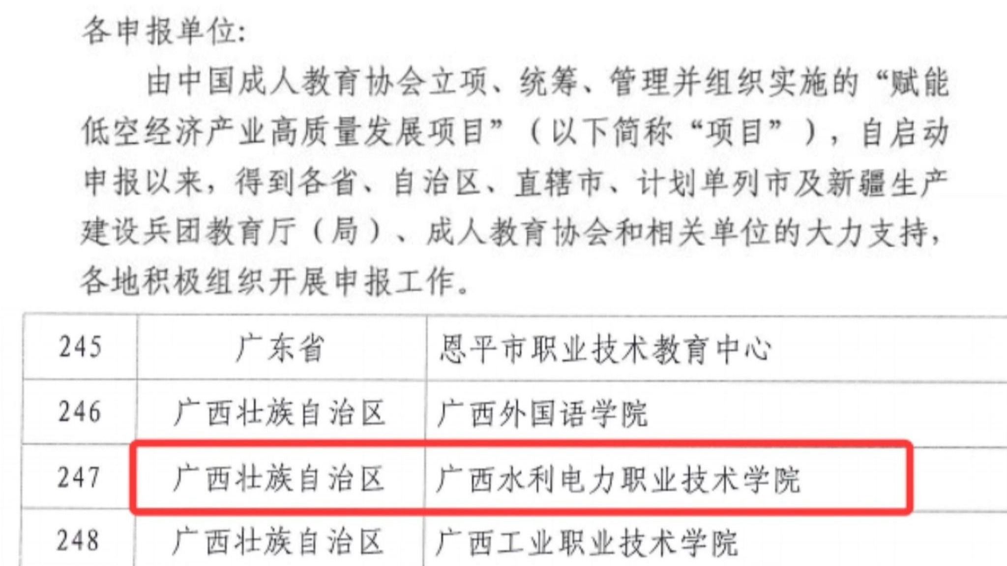 [本网讯]近日,学校成功入选中国成人教育协会“赋能低空经济产业高质量发展项目”实践单位名单,成为广西区内参与...