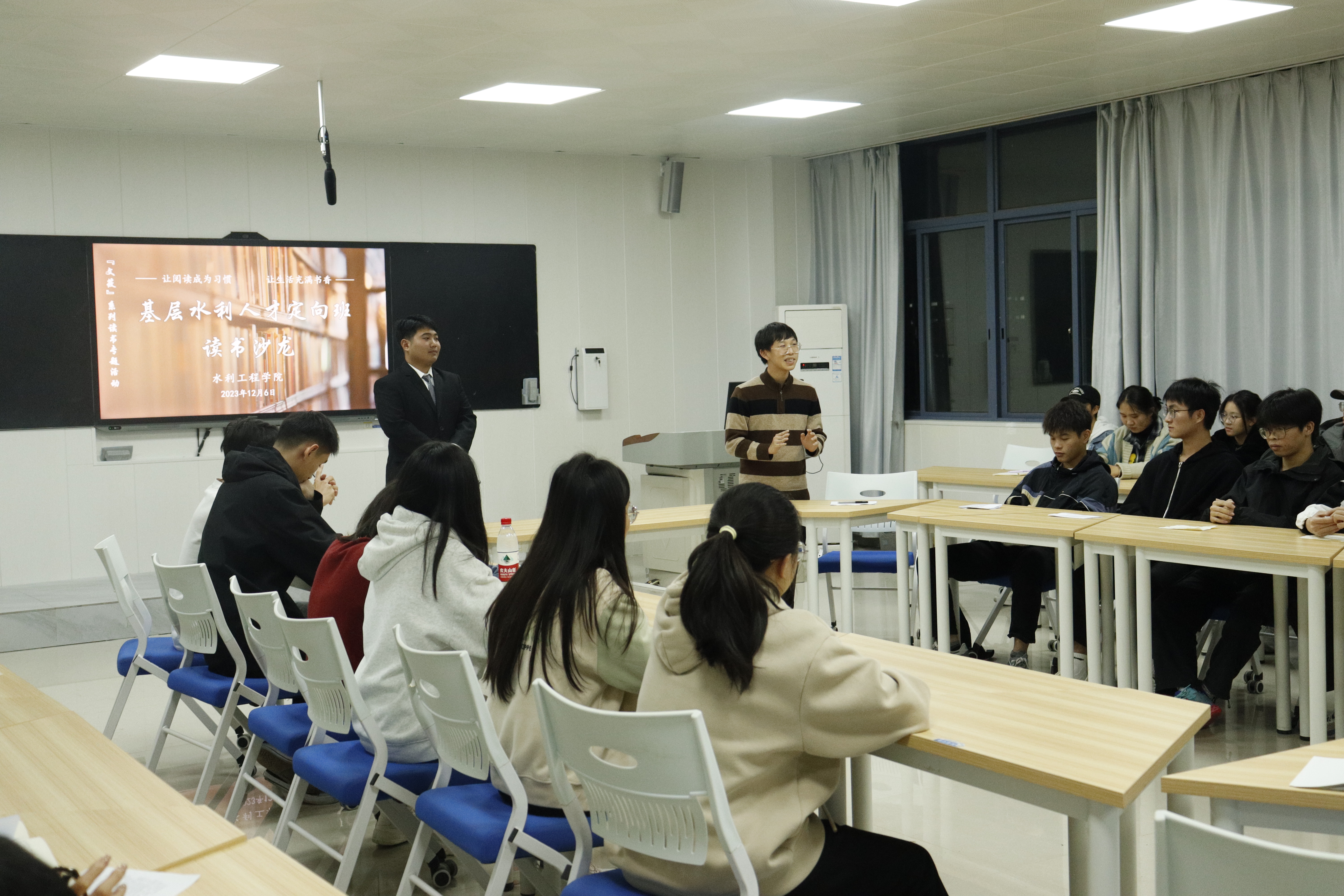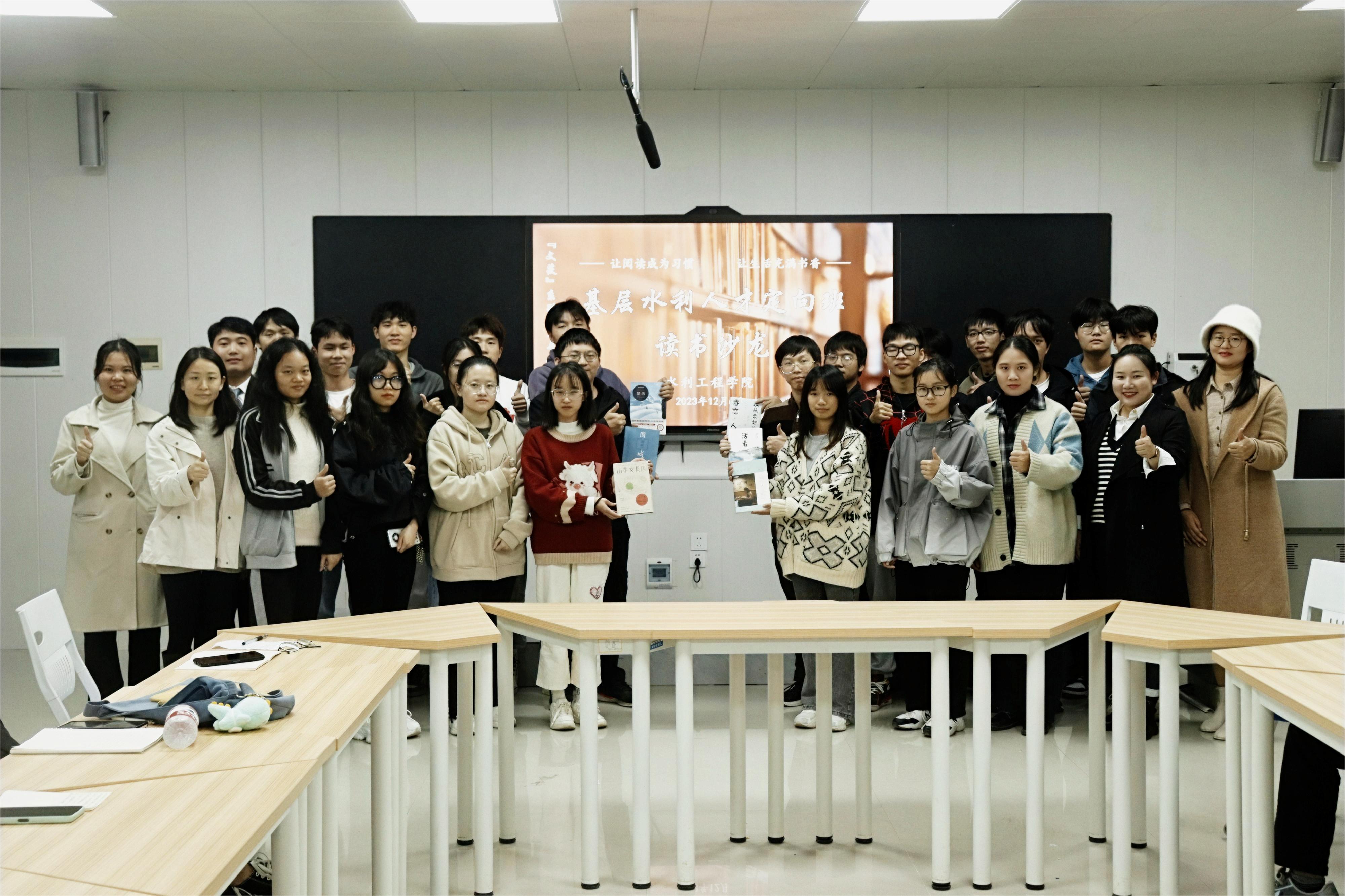 [本网讯]为深入学习贯彻习近平新时代中国特色社会主义思想,加强阅读引领、涵育阅读风尚,激励广大青年学子以读促思、以读促行、做到学思用贯通、知信行统一。12月6日,水利工程学院在里建校区举办了一场基层水利人才定向班读书沙龙,该活动由“慕水”辅导员工作室指导,参加人员包括2021、2022、2023级的基层水利人才定向班师生代表。此次读书沙龙旨在增进师生之间的交流与互动,提升基层水利人才的专业素养和综合能力。